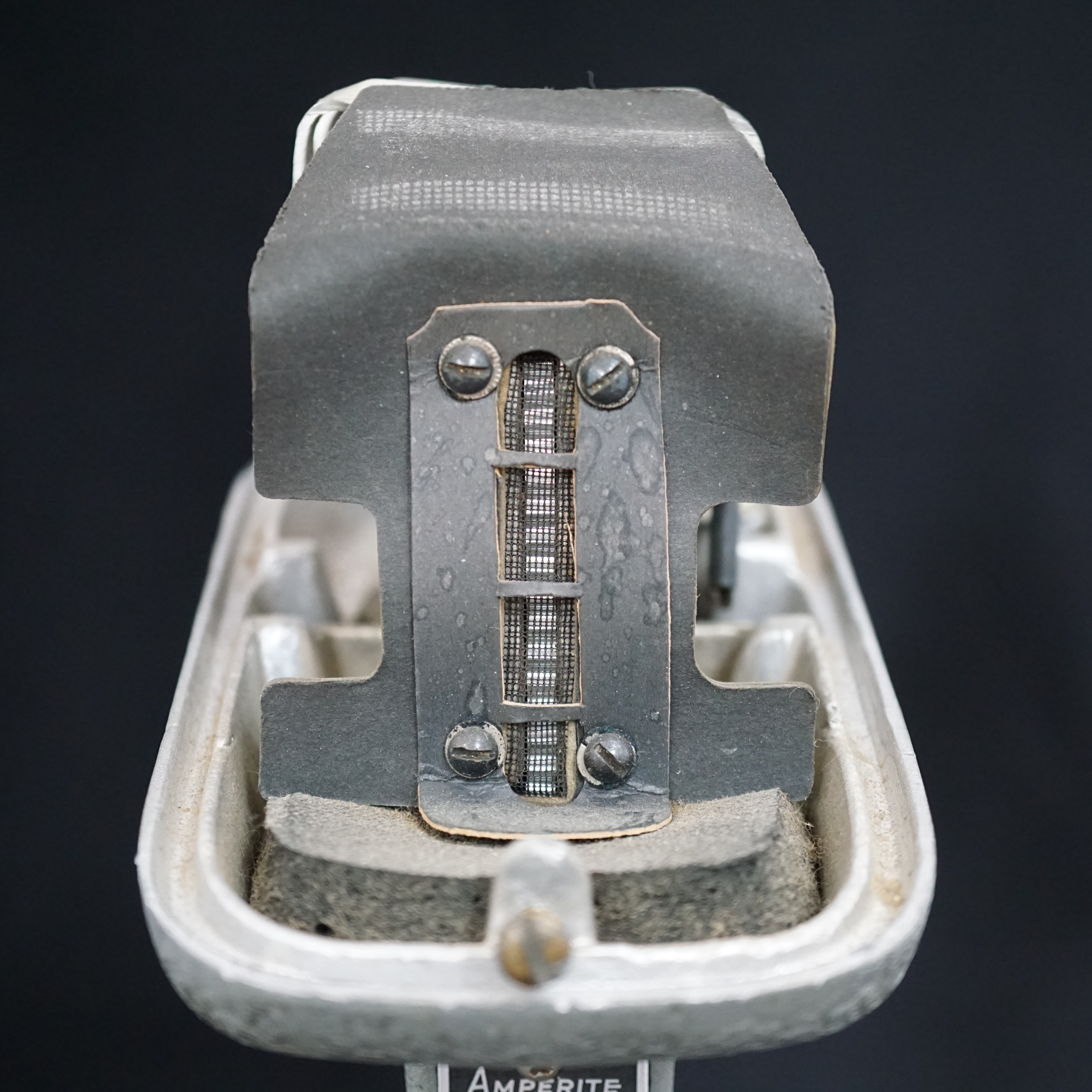 This RBHG is a unique looking ribbon microphone designed for public address duties. The marketing material of the time claims that it will handle high sound pressures and will even adjust its output level automatically, although there is little inside that really backs up the latter claim - if the ribbon extended out of the magnetic field by a loud sound then the output level would start to fall away, but that could also be said for many other ribbon microphones. Our example had a thick ribbon and a somewhat lumpy frequency response.