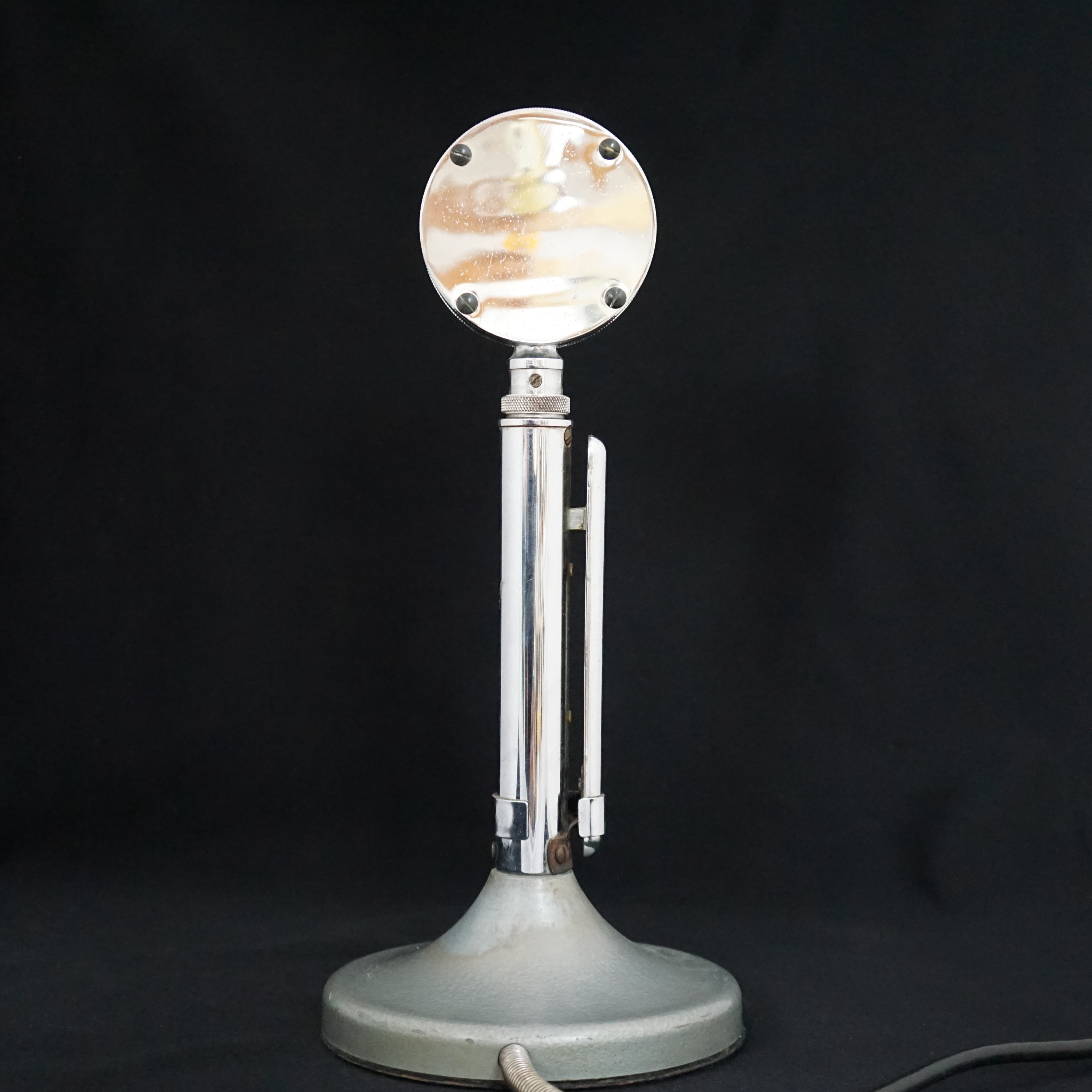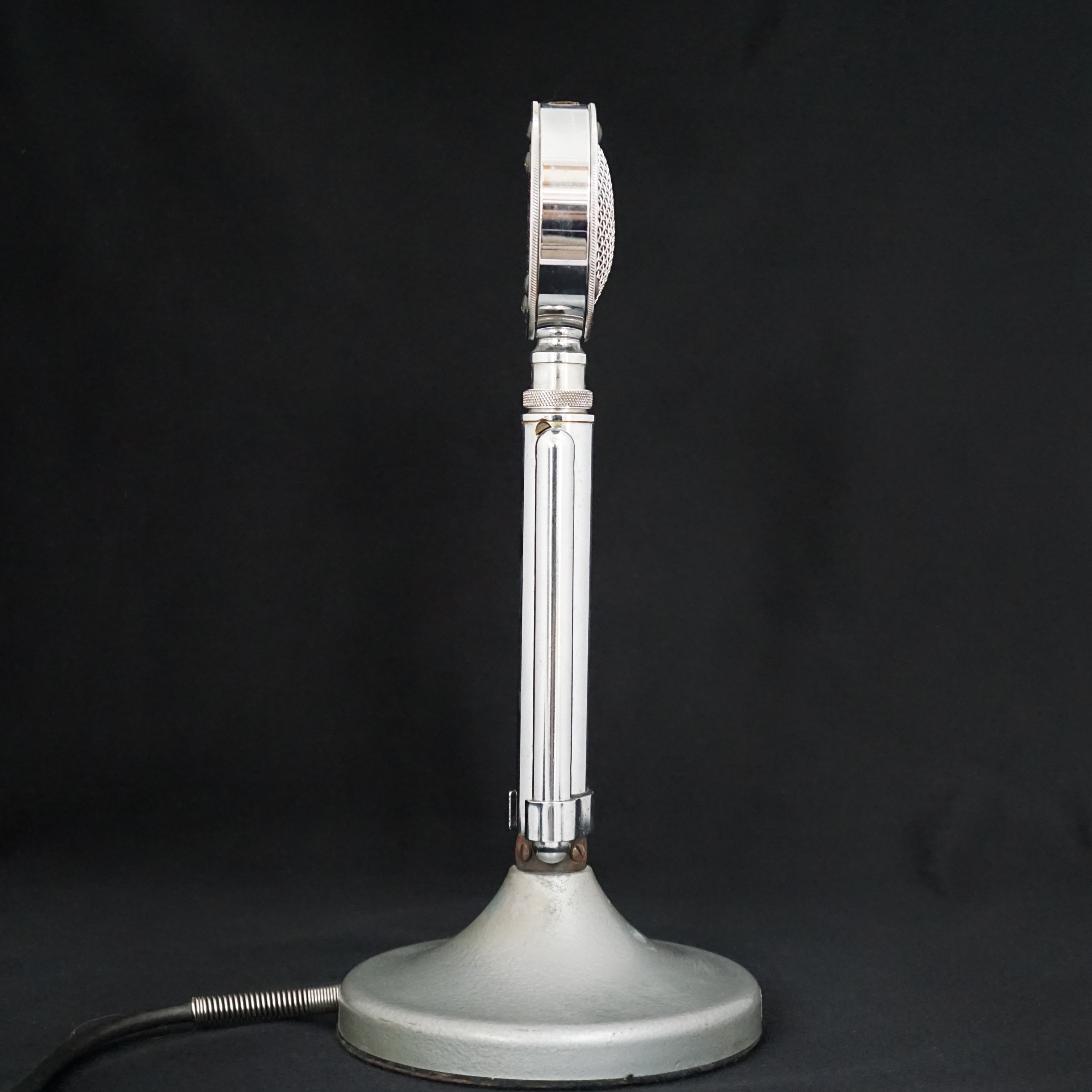 Speech range frequency response from 500 to 4,000 cycles. Bright chrome finish. Standard equipment includes interchangeable plug and connector, spring cable protector and 7 ft. cable.