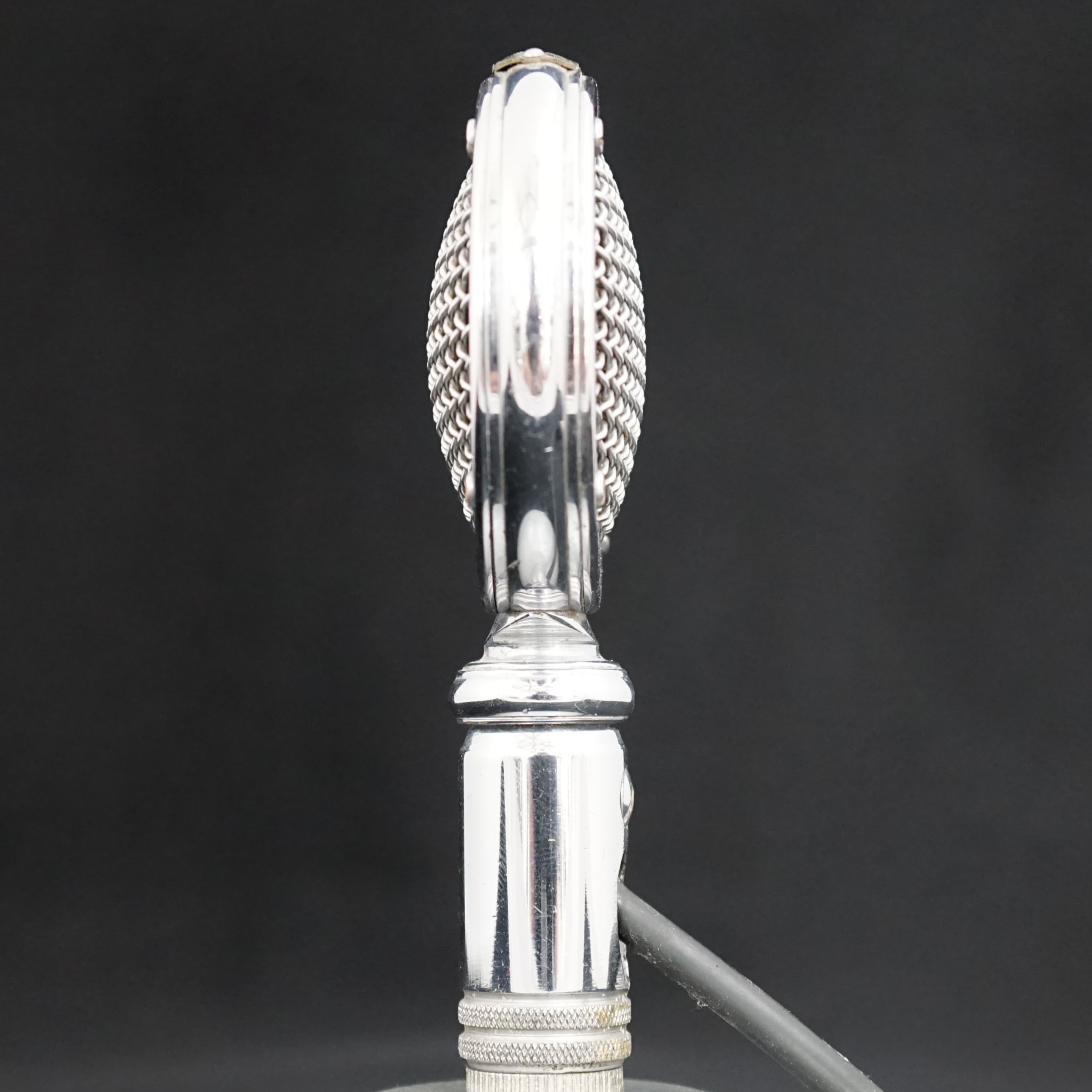 THE MODEL D-2, shaped and styled like a watch immediately wins the heart of every microphone user wherever public appearance is made. Not only beautiful to look at, but does not obstruct performer's face.