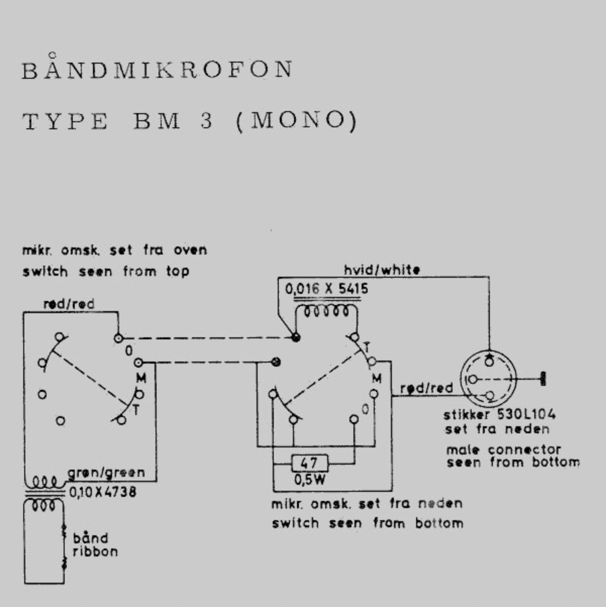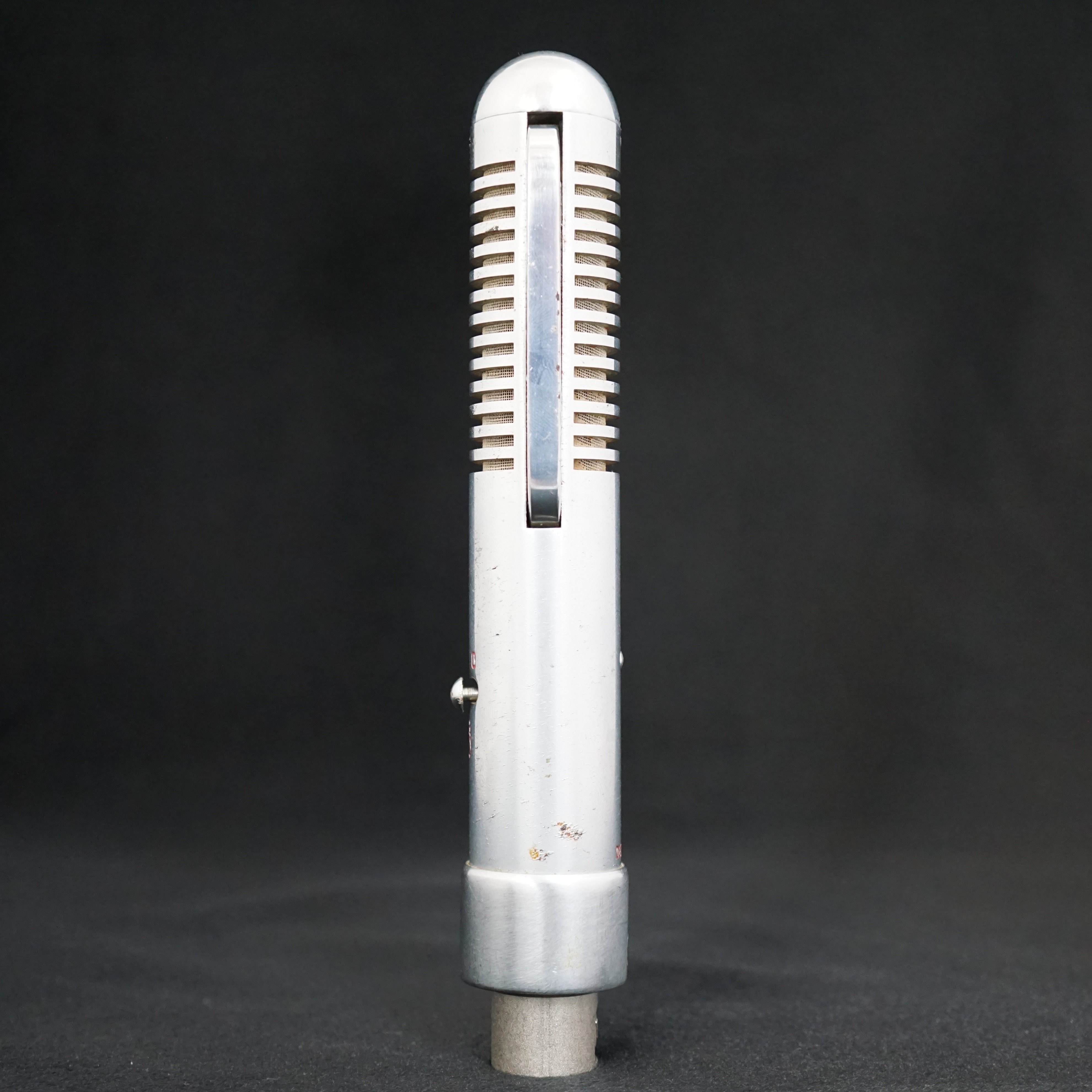 The BM3 and BM4 look very similar to one another, and used an evolution of the motor assembly in the BM2, this time in conjunction with a steel tube body. This design set the style for all their later ribbon mics, and also inspired Speiden and Royer microphones. In the case of the BM3, the ribbon motor frame is larger than the diameter of the tube and sticks out from the sides of the mic, giving it the look of a long face with ears, or perhaps Doctor Who's Cybermen. It has a three way selector switch which provides M (music - full range), T (talk - HPF) and 0 (off) positions.