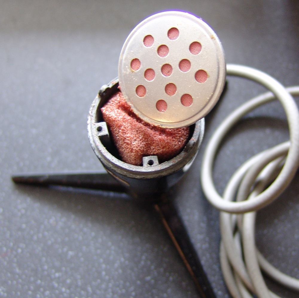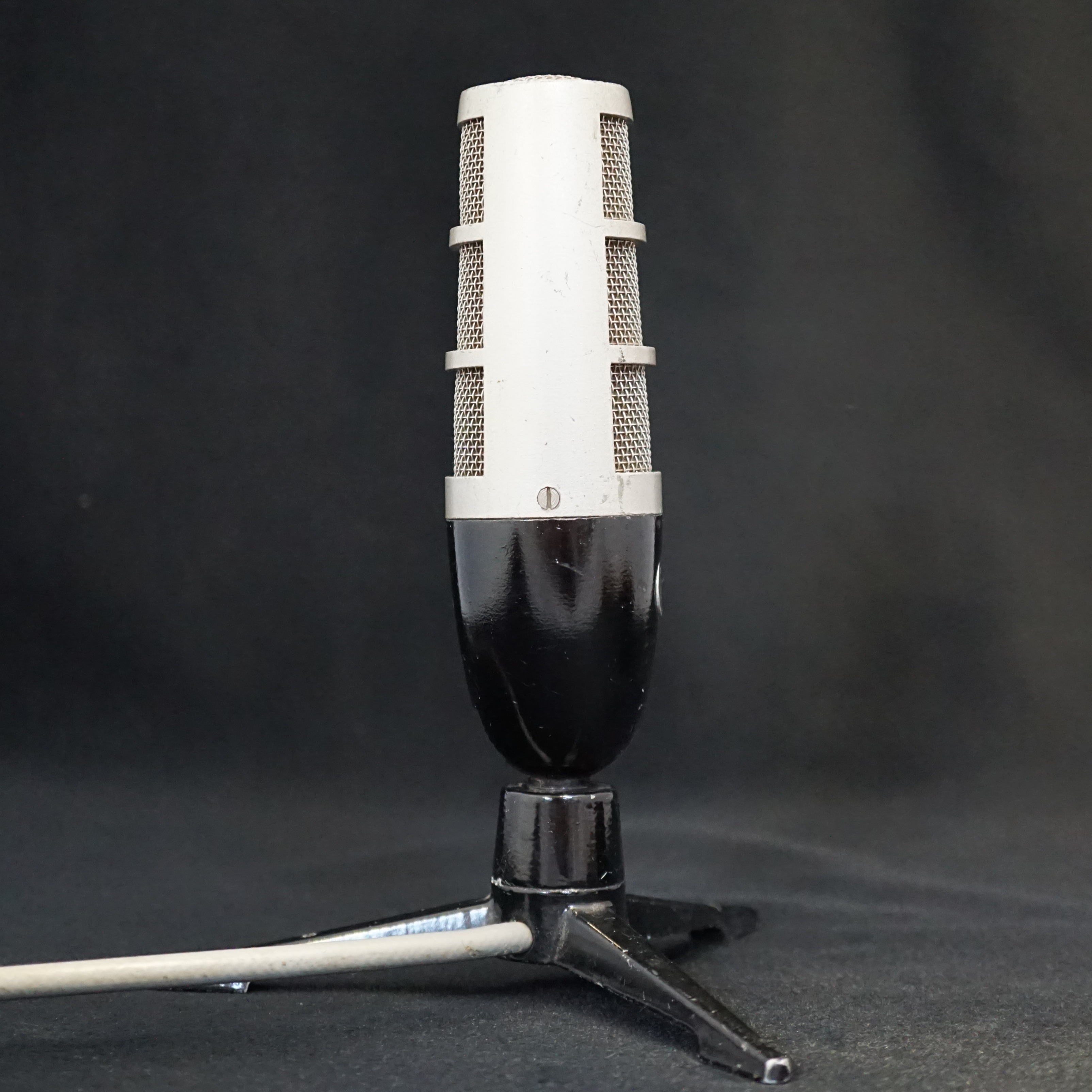 For a few years Cadenza made a high impedance crystal microphone alongside their more common ribbon microphone. The two models shared most of the same body parts. All of the cast metal parts - the grill, lower body, tilting mechanism and tripod are the same for both models. However the crystal microphone could not be removed from the tripod and remained fixed in position, to be used on a desk or living room floor.