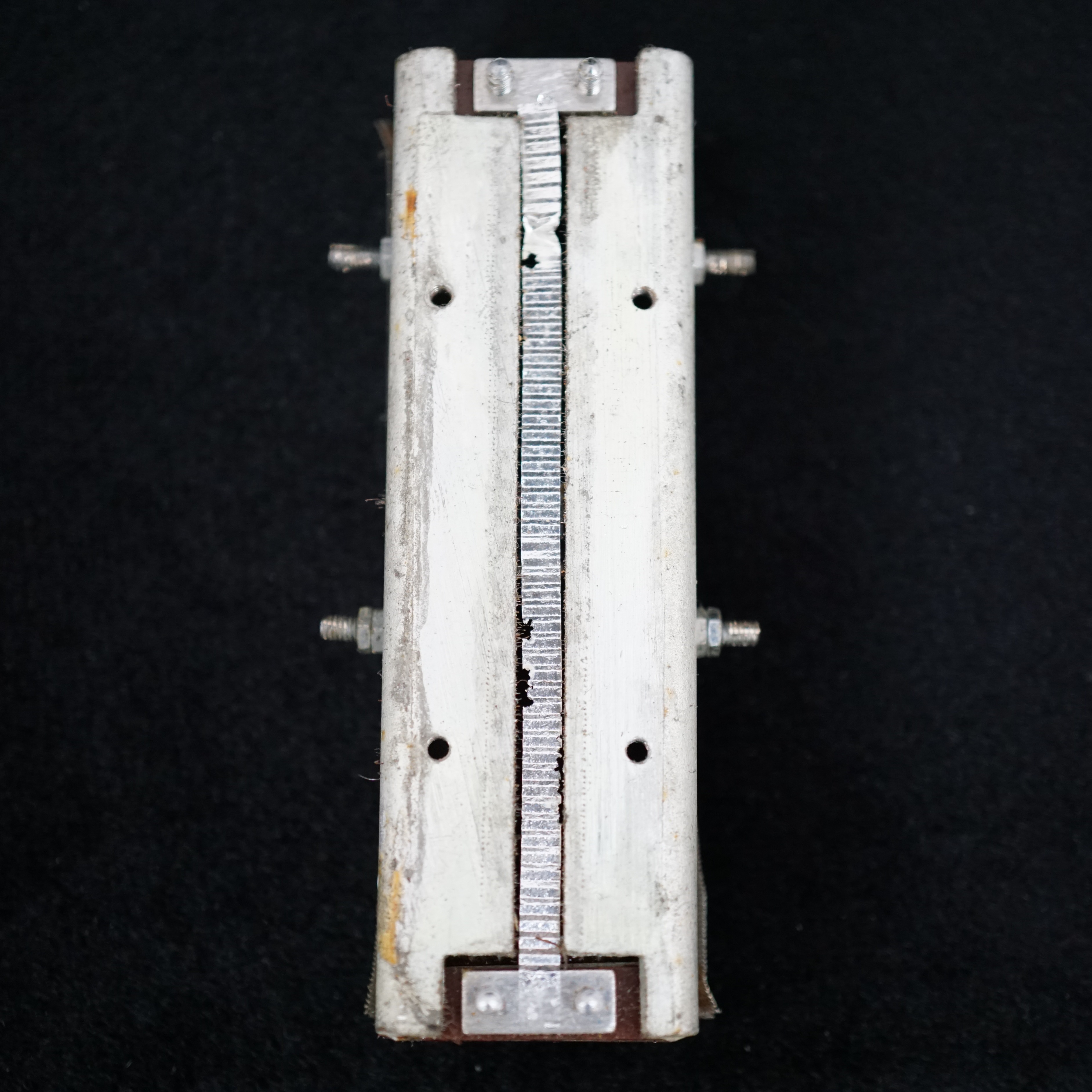 "When the adjustments have been finalised, the block and spring are held in place by cement or other setting medium. By having the two halves of the ribbon separately adjustable it is possible to arrange that the motional impedance curves of the two halves are displaced from each other by an amount sufficient to produce a much flatter curve than would be the case with a single ribbon."