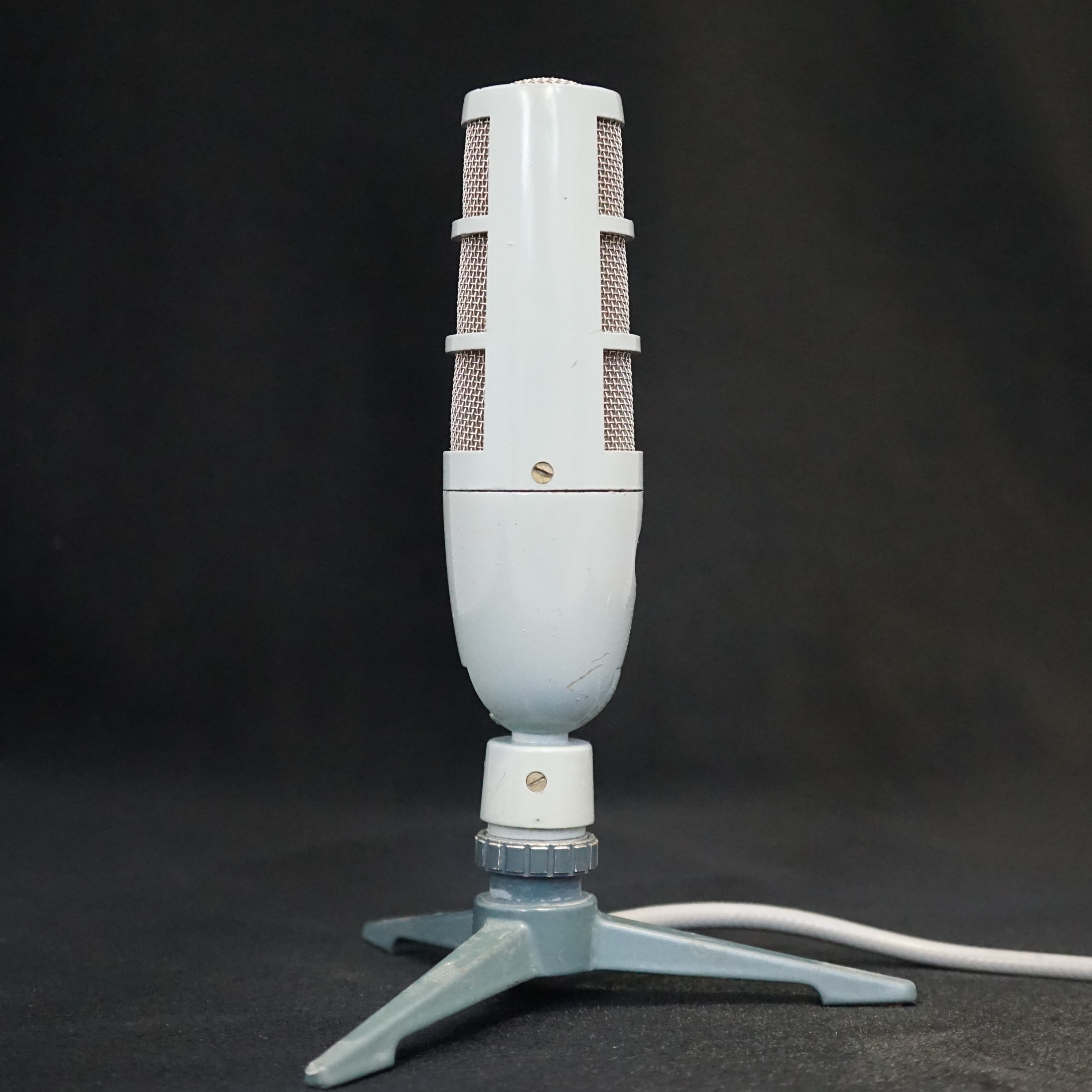 The Cadenza ribbon microphone was made in high volume and is still relatively very common and easy to find, at least in the UK. Some of them are branded EAP rather than Cadenza. Connection is made through a proprietary connector which is integrated into a tripod, which is great if you want to place it on your desk but frustrating for general use. Cadenza microphones were usually supplied in a robust hinged metal case which is perhaps one of the reasons that so many have survived. However they do not always age well and there are common issues with oxidation of the internal wiring and insulation. The transformers can be weak and noisy.
