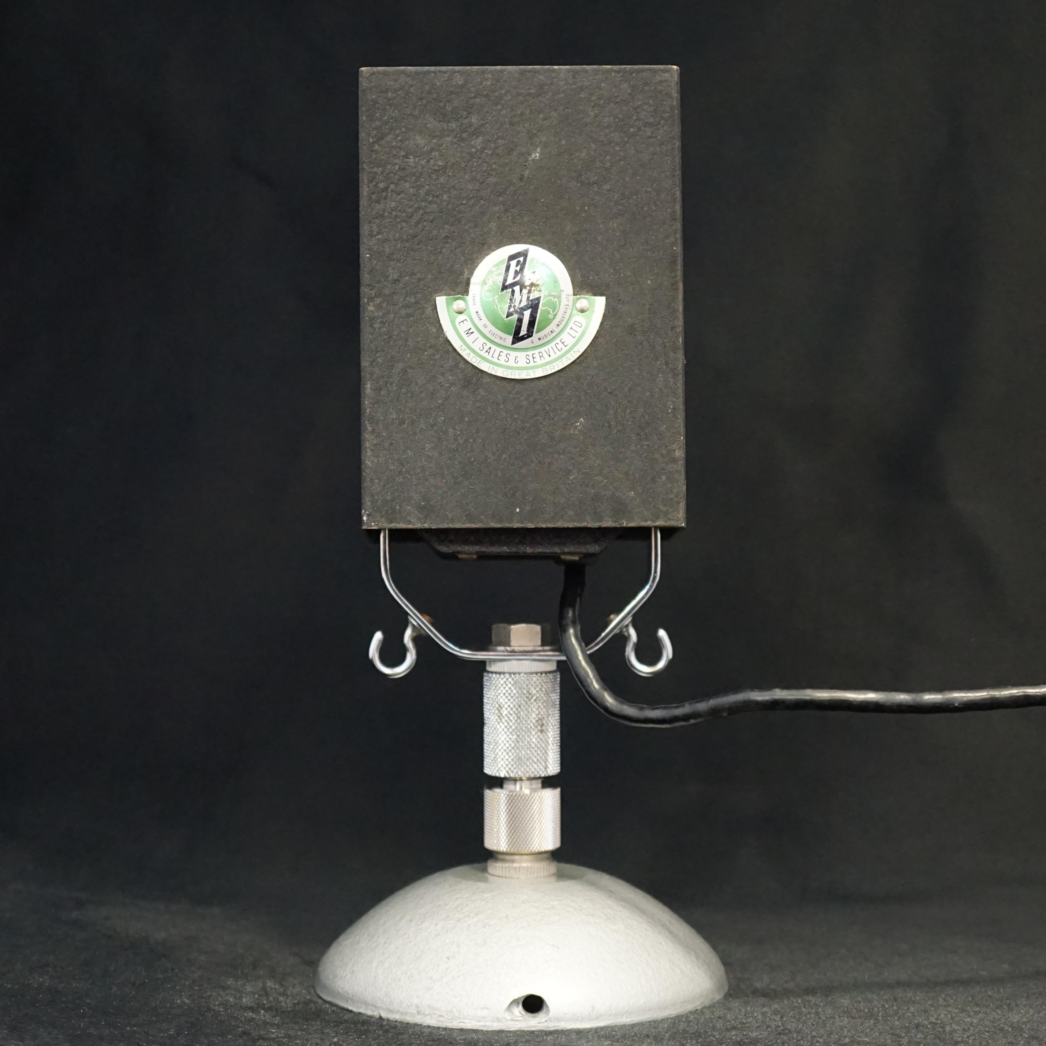 The EMI 2350E model was intended for stand or table use, while the 2351E variant featured hooks for suspension boom or floor stand mounting. These microphones were also sold under the HMV brand, with the 2350H and 2351H models corresponding to the EMI versions.