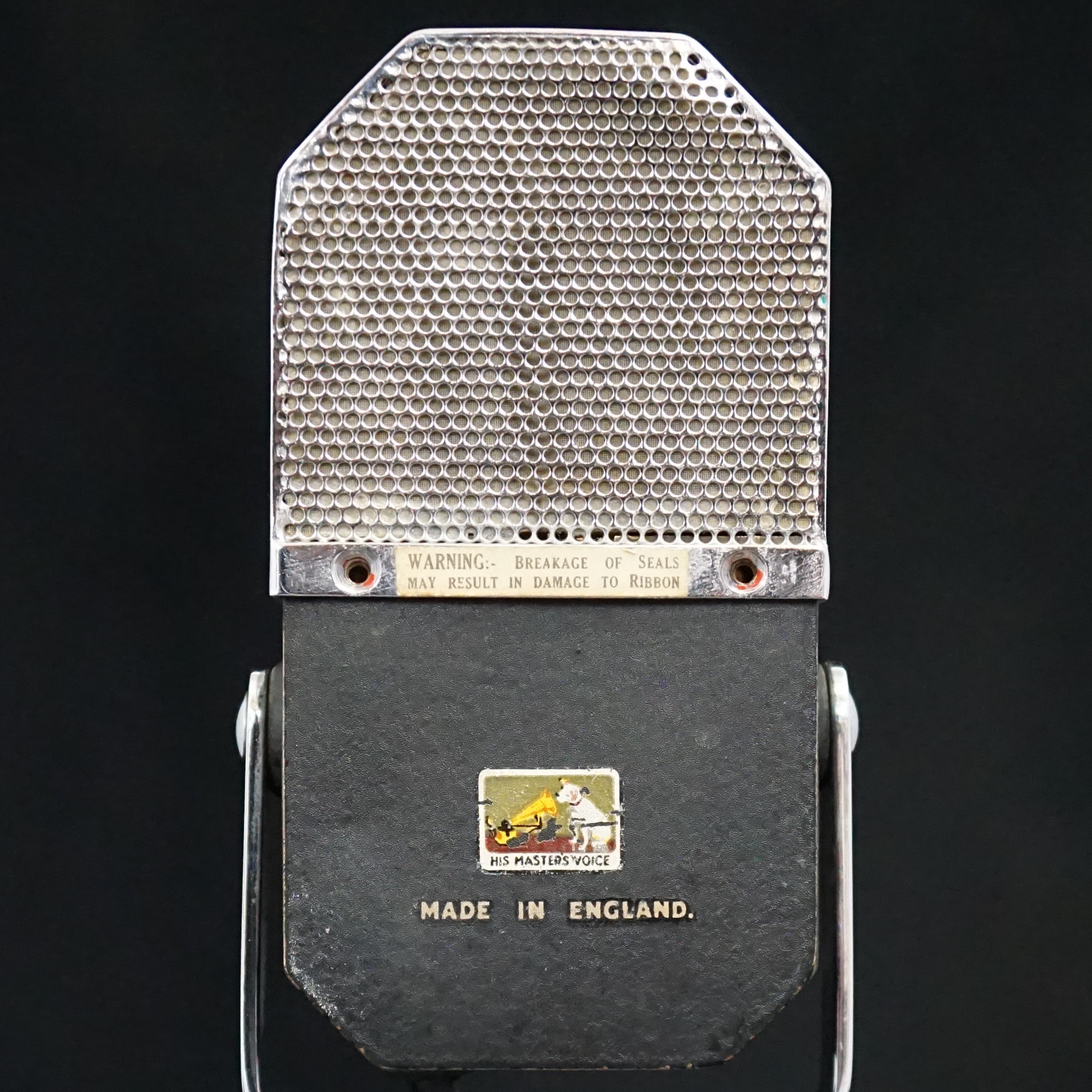 The H.M.V. Ribbon Microphone is a precision instrument designed to exacting professional standards. For recording or sound reproduction it is capable of faithfully and naturally translating the complex sound waves of a full orchestra, speech or other sounds into equivalent and accurate electrical impulses necessary for high fidelity work. This microphone will respond perfectly to the softer shades and overtones of instruments and voices and when used under condions of high sound intensity is particularly free from distortion. Reference to the specification shows its excellent electrical characteristics.