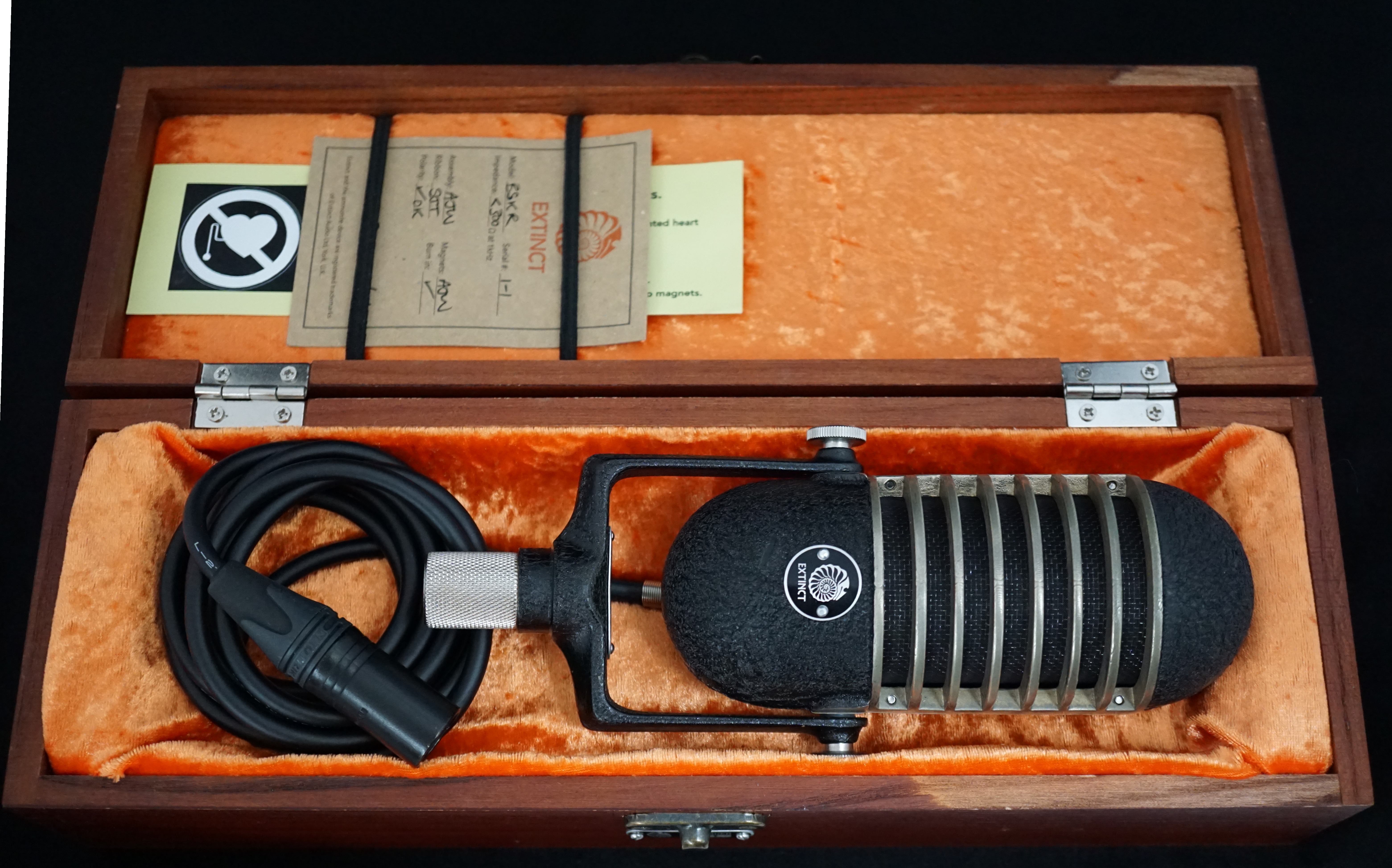 The microphones are numbered in the format X-Y, where X is the batch number and Y is the unique identifier within that batch. So, for example, the Berserker in our collection is marked 1-6, the sixth mic from the first production run.