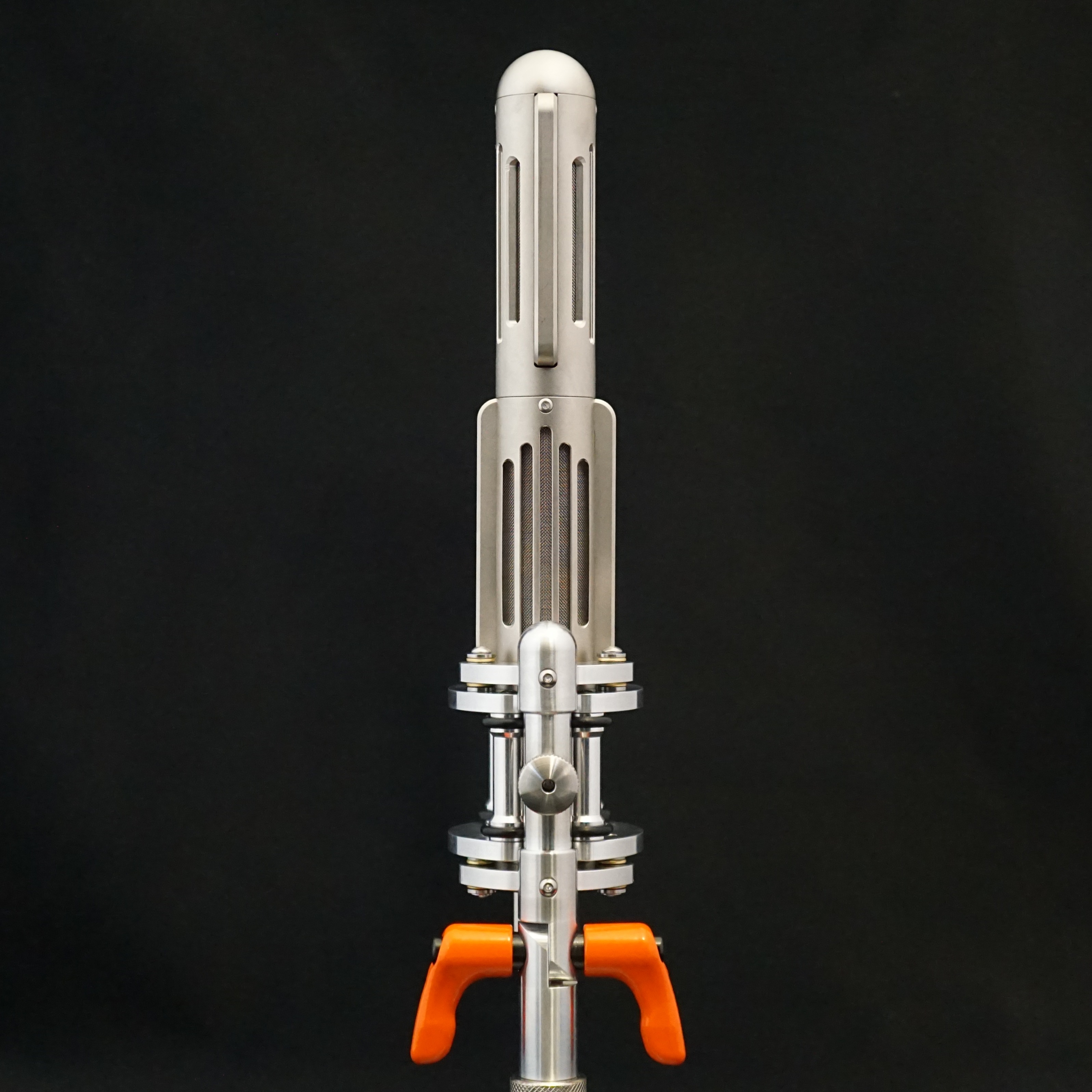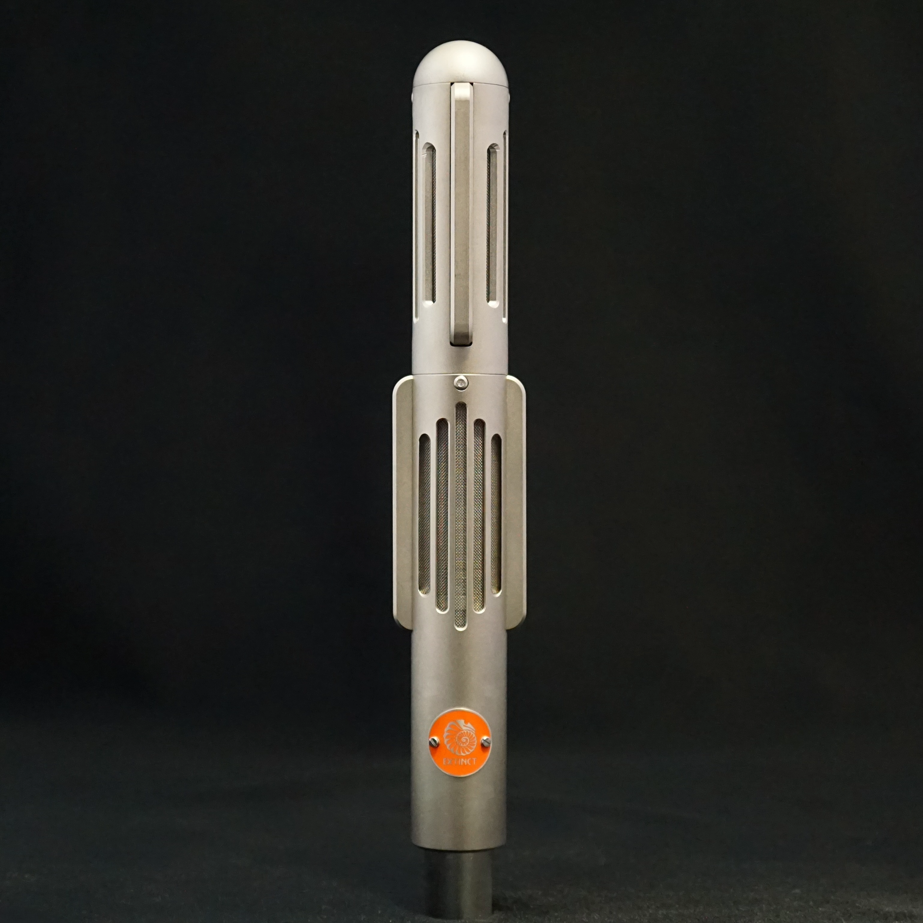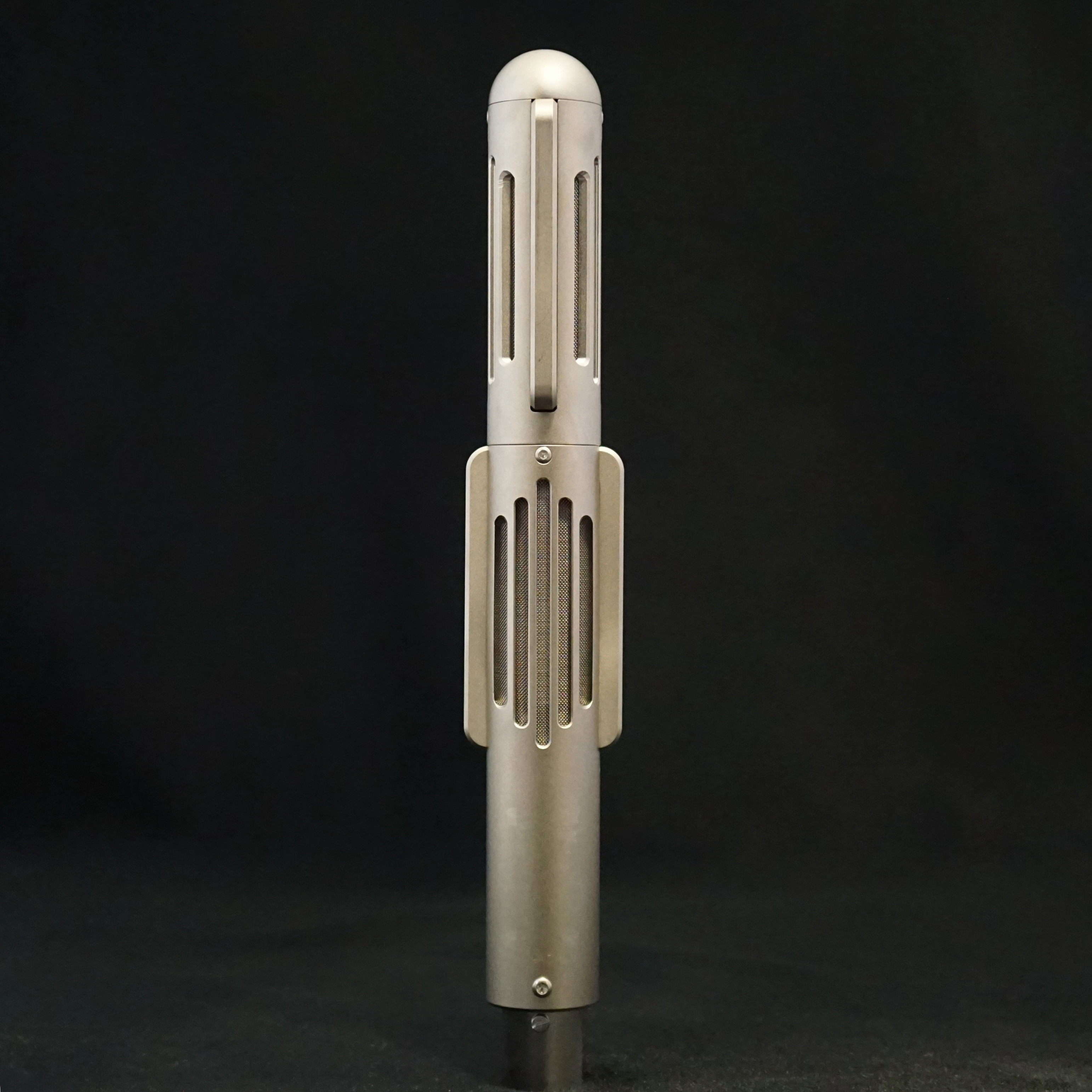 The Valkyr was launched in 2018 as a stereo version of the already popular BM9 ribbon microphone. The Valkyr uses two identical matched ribbons that are fixed at 90 degrees, making it ideal for Blumlein recordings or Mid-Side stereo. It is designed to be quick to set up and record. The front (i.e. positive lobe) of the lower channel is identified by the orange badge and the front of the top channel is marked with a small indent that is (usually) infilled with orange paint.