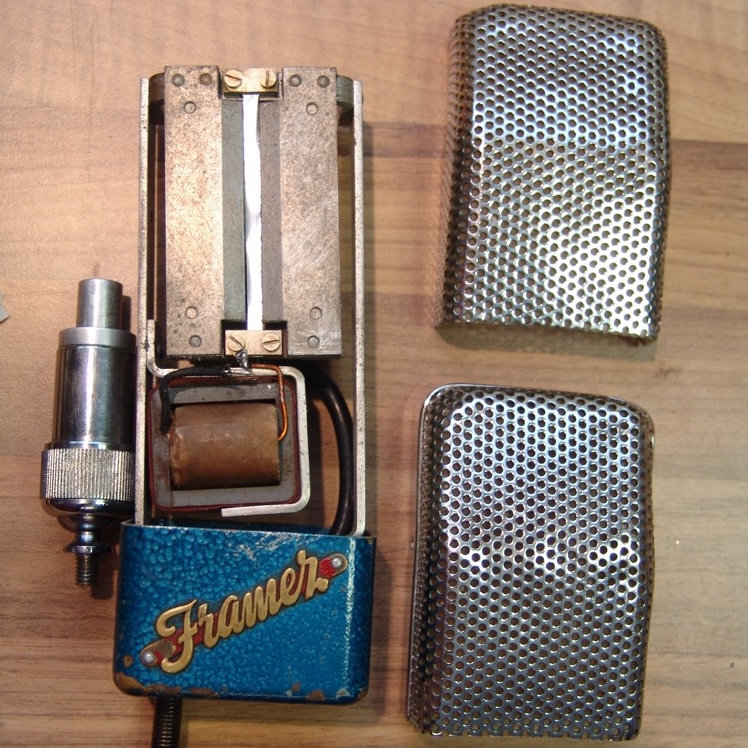 This looks very much like a copy of the RCA 74b 'junior' microphone, but is physically somewhat smaller. And it is a pretty good microphone in its own right. The magnets have retained their strength over the years, measuring a healthy 4500 gauss between the pole pieces. It has a hefty transformer with taps for both low and high impedance, making it suitable for either recording and PA use.
