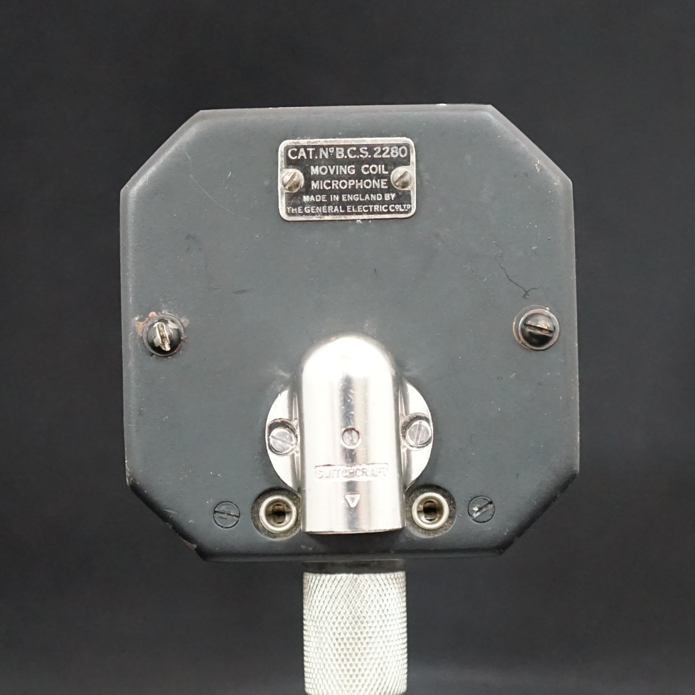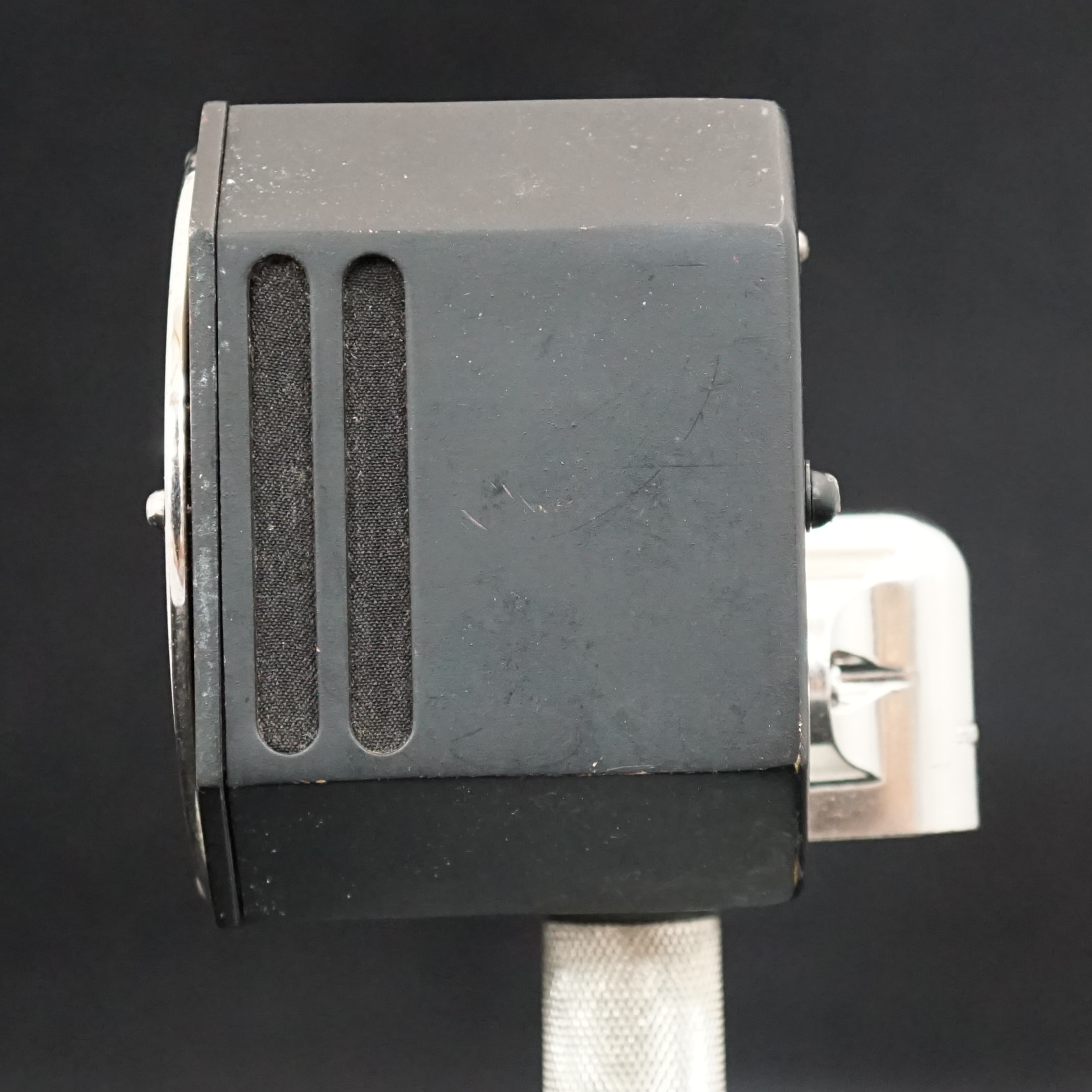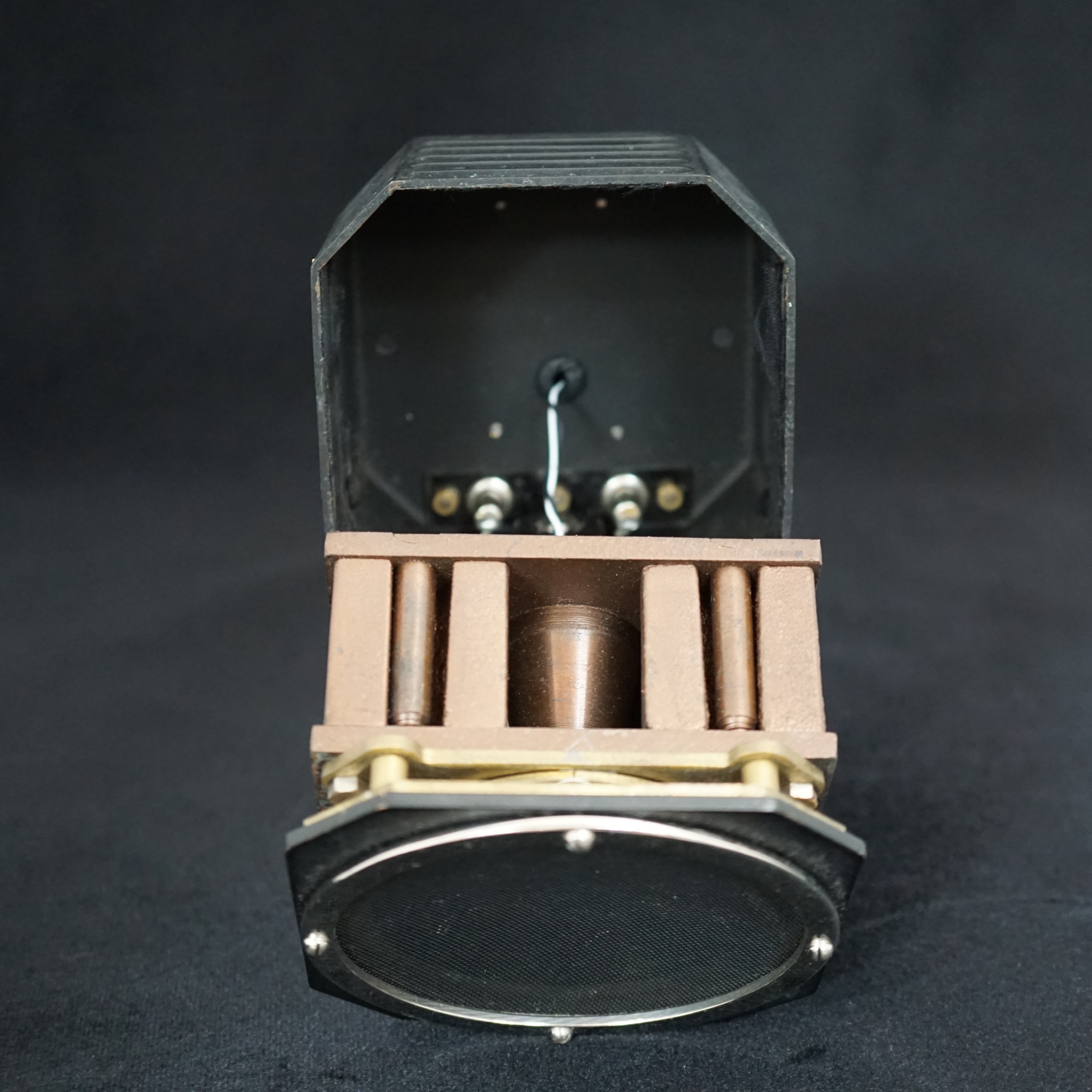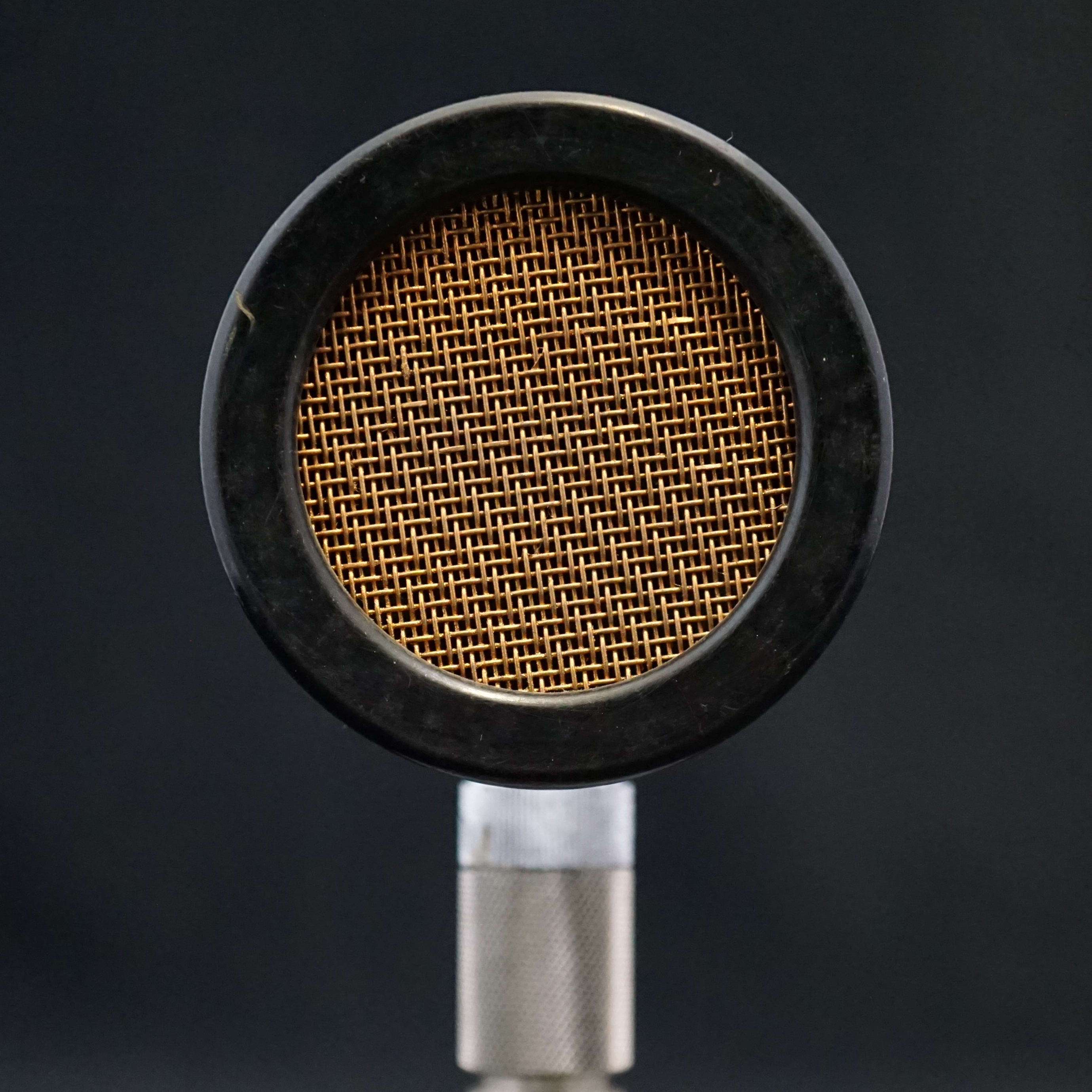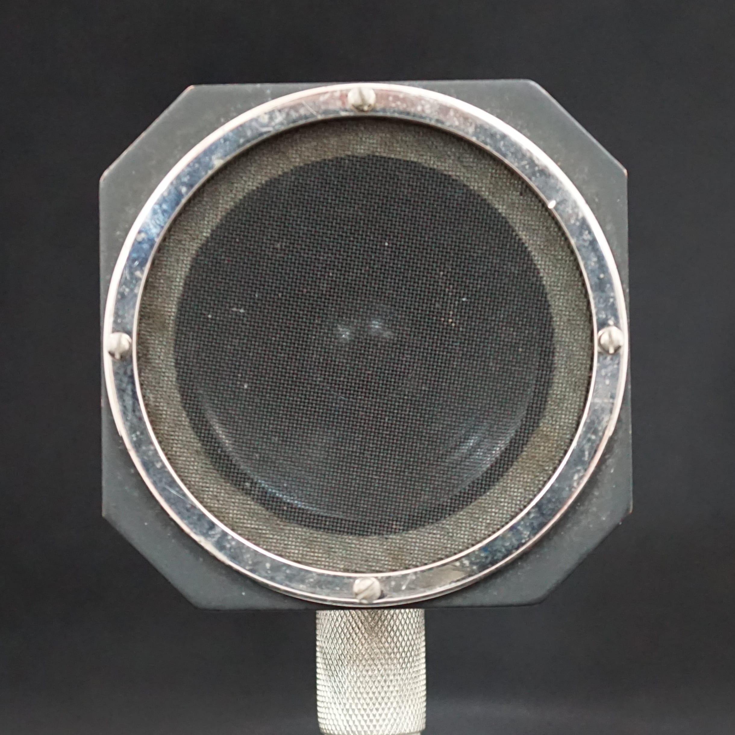 This design is very much like a reversed speaker used as a dynamic microphone. Our example has been converted to XLR output but originally used two small banana-style plugs. We have a second example in the collection marked BCS 2290.