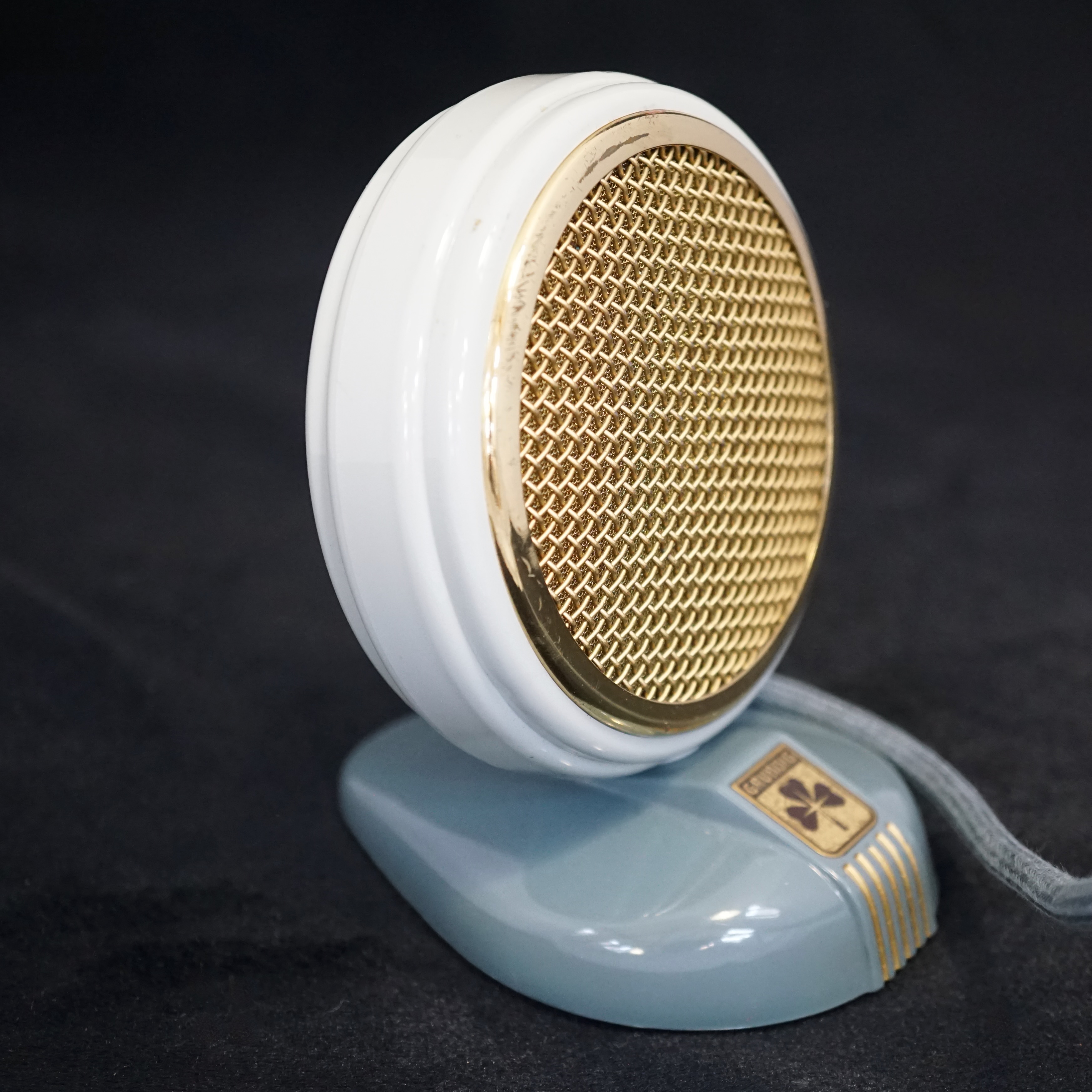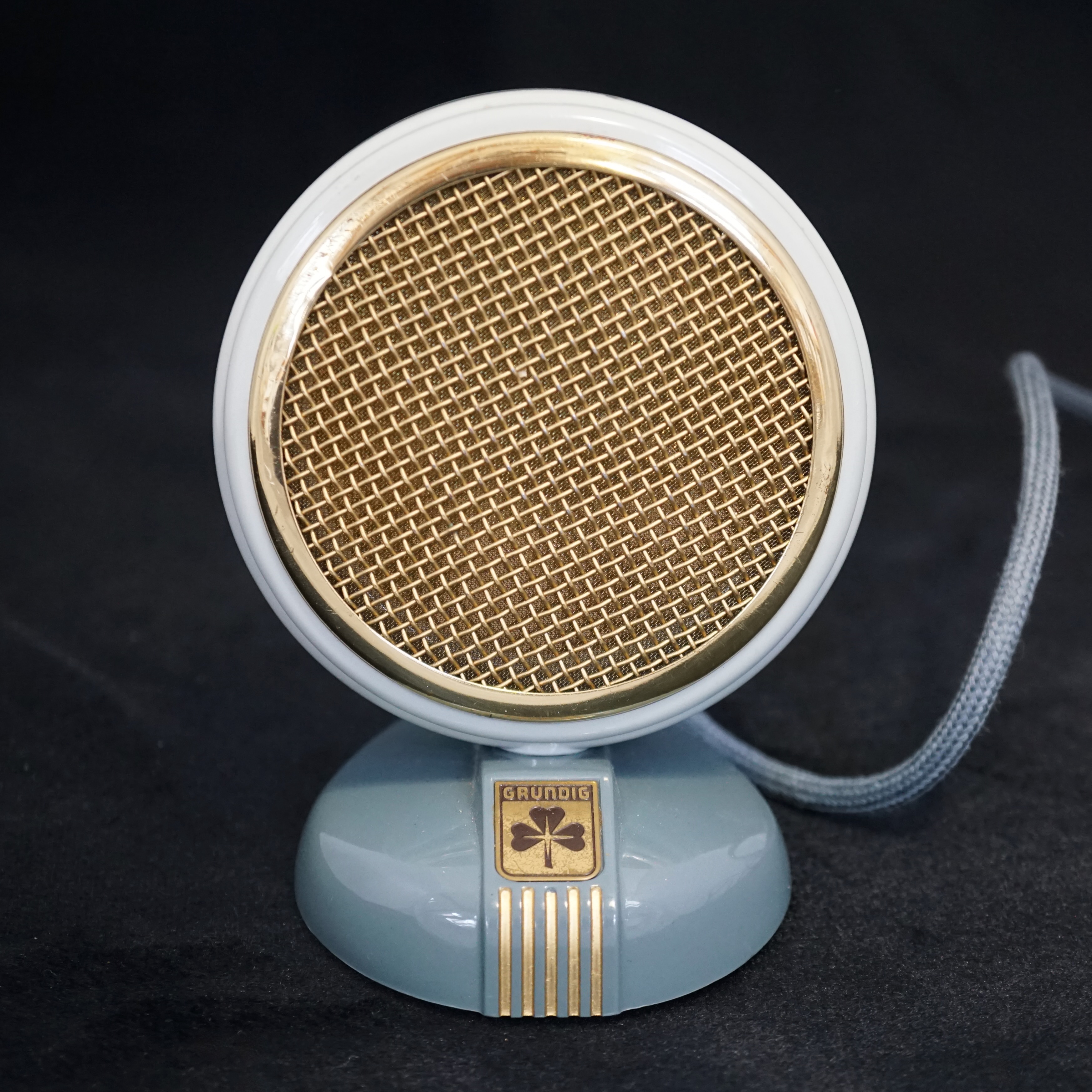 The Grunding GCM3 is essentially a very large diaphragm condenser microphone capsule in a plastic (not bakelite) case. The capsule is around 3 inches / 7.5 cm across which makes it the largest we have seen. GCM3 microphones were either brown and gold or blue and grey.