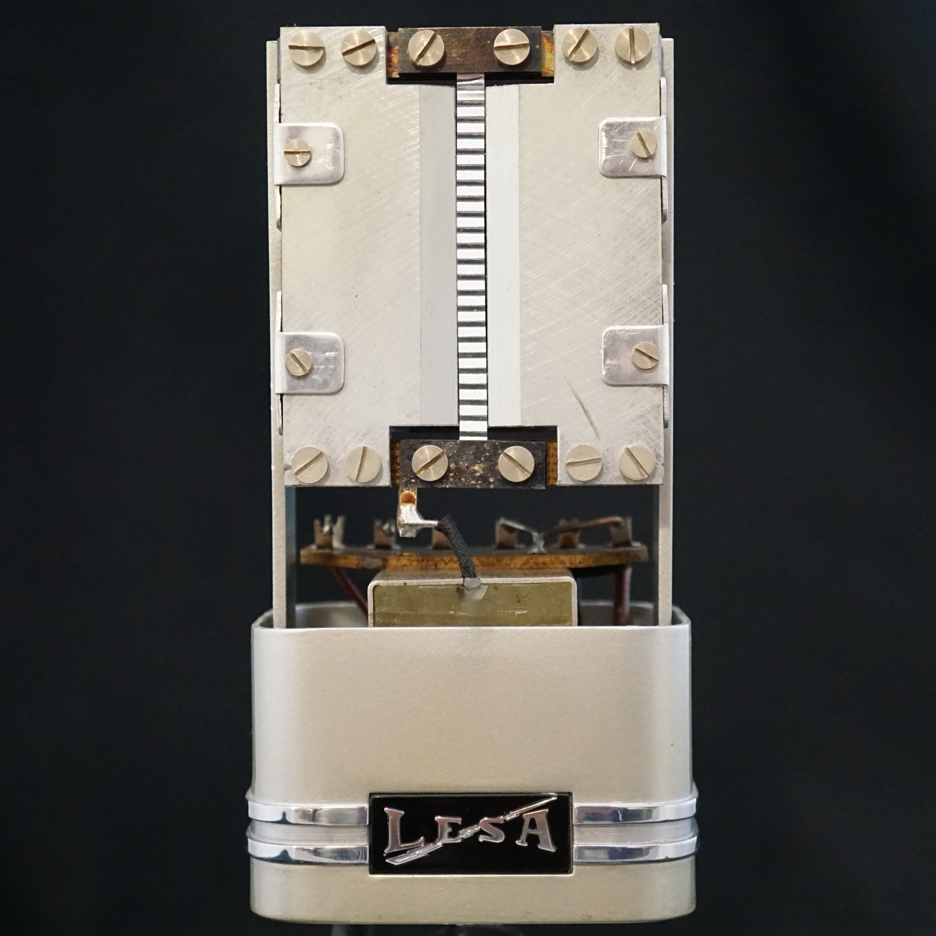 Earlier examples were made a different script style logo, which indicates that LESA were already producing ribbon microphones before the 1950 re-branding.