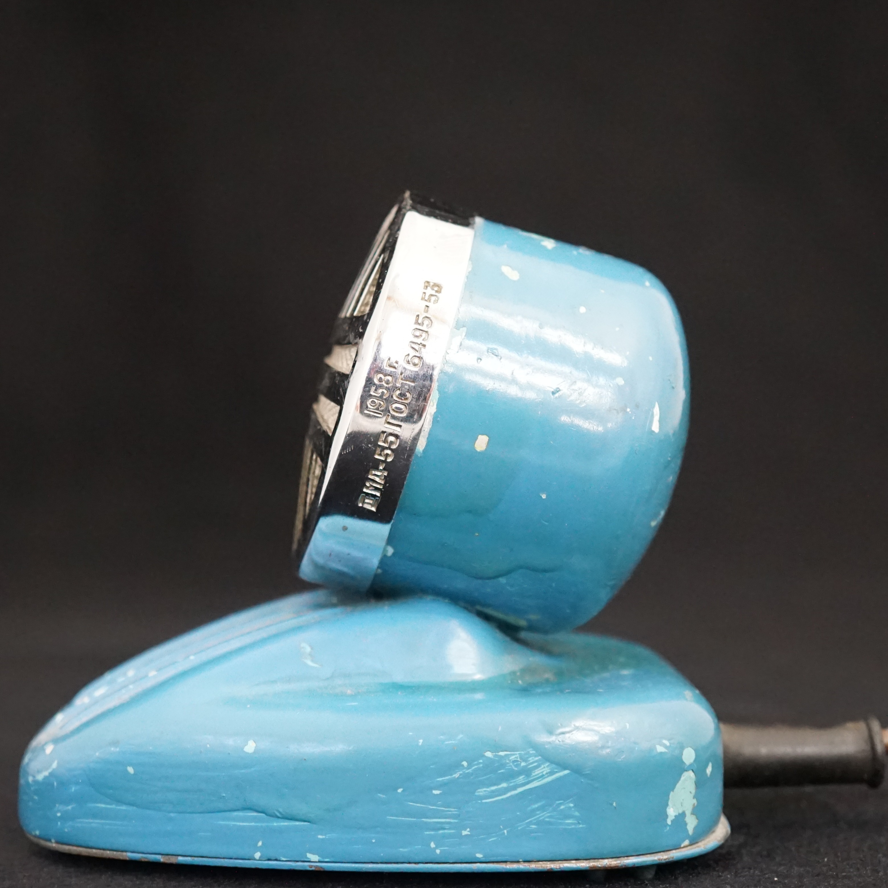 Soviet-era small dynamic microphone on a desk stand. Relatively scarce for an Oktava model. Made in 1958