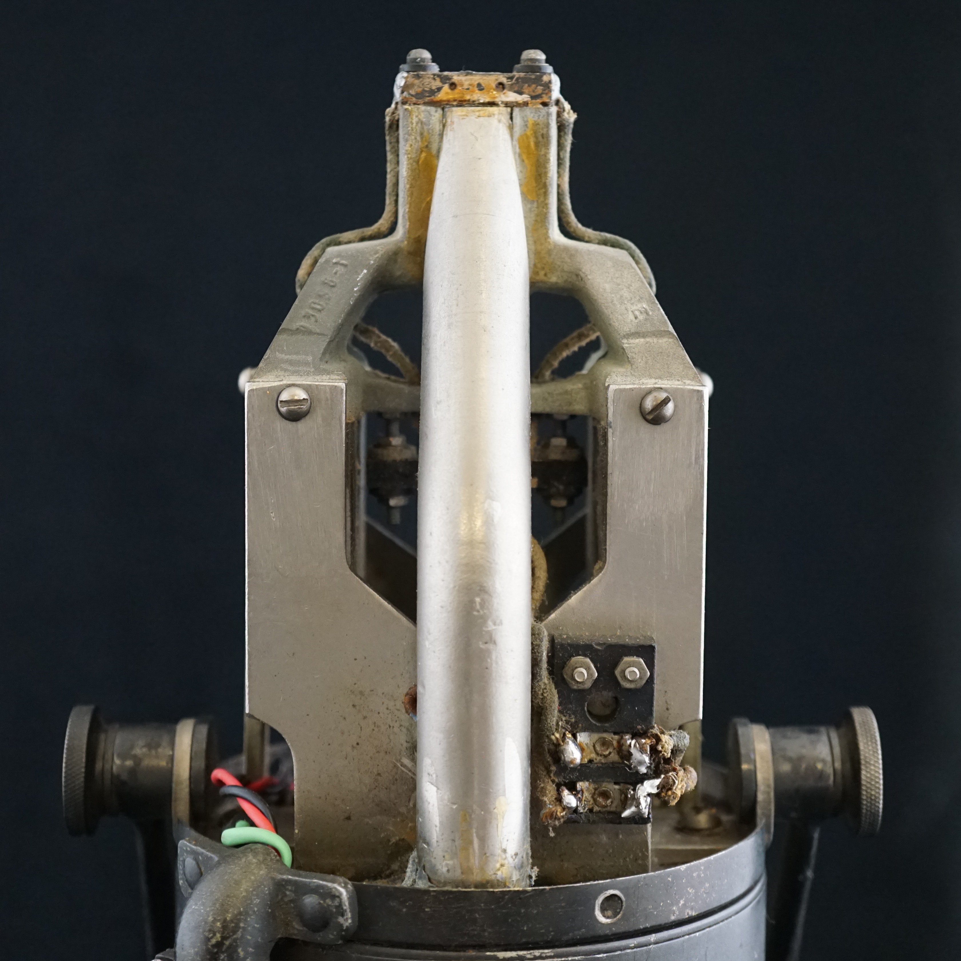 The 77-A is a huge microphone resembling a cannon shell with a large perforated windscreen on the top portion. The example in our collection weighs a massive 4.3 kilograms and is over 33 cm high, making it the largest mic in the museum.
