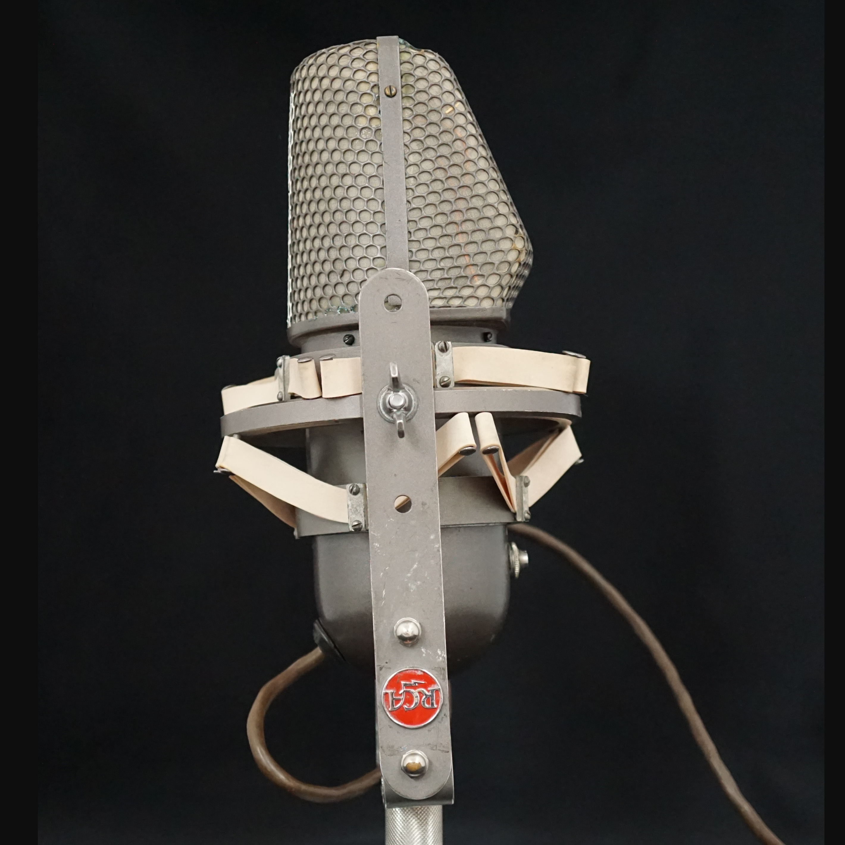 Our KU-3A has a three position switch which allows the user to select from full range and two high pass filter options. It has a white stripe marked on the rear grill, which is typical of a microphone used on a film set. The boom operator could use the line to follow an actor as he or she walked across the stage. This is also seen on the KU-2A and RA-1142 microphones.