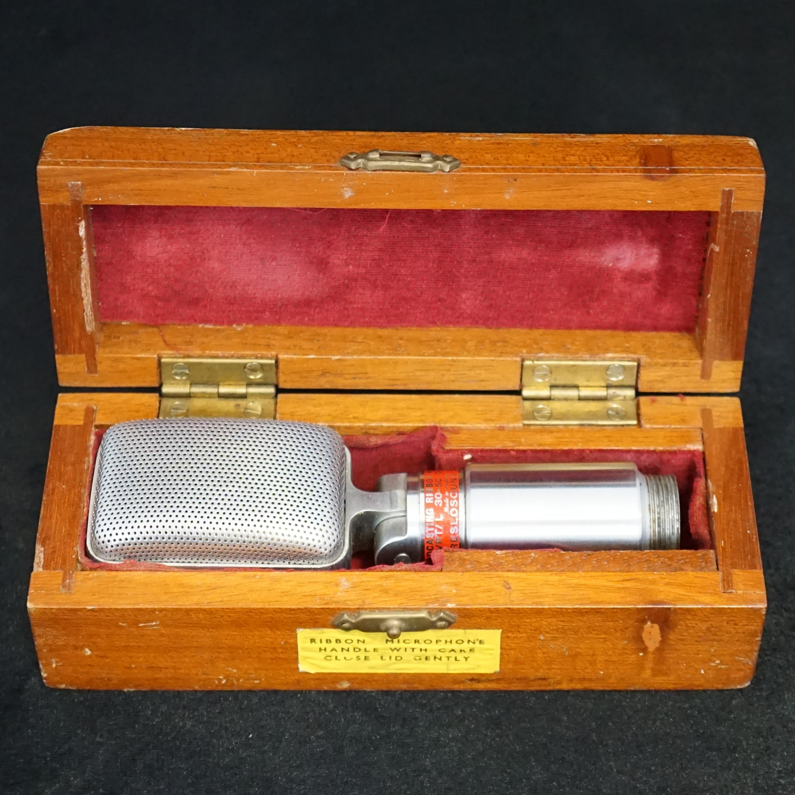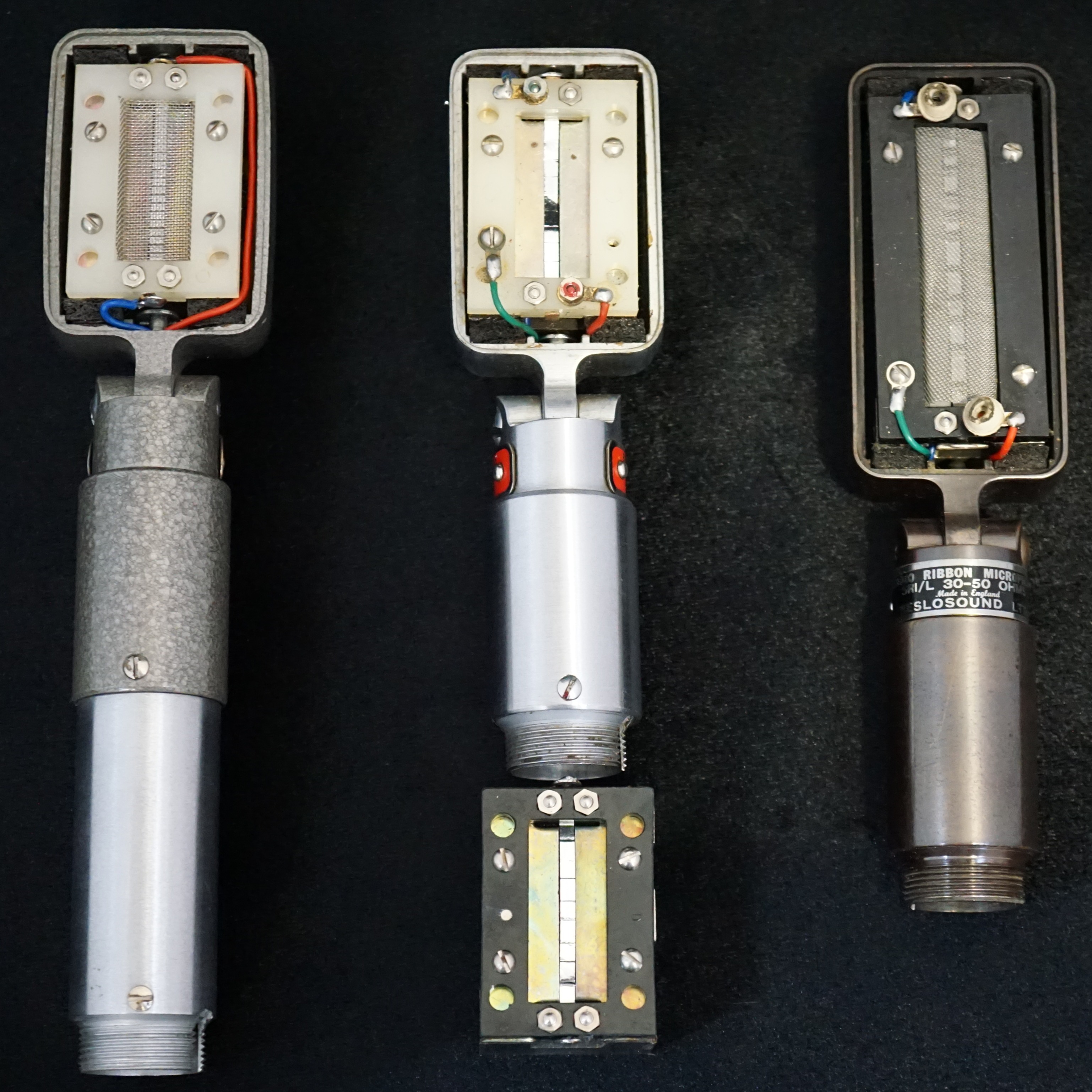 Reslo, a.k.a. Reslo (Sound) Ltd., a.k.a. Reslosound, was a British manufacturing company who made audio equipment and produced A LOT of microphones between about 1937 and 1978. In just 40 years they went from making primitive carbon button style mics through ribbons to modern looking electrets and handheld dynamics. In the middle were the ribbons that we associate with the brand, including the RB and CR models used by a well-known beat band from Liverpool. The RB was in production from the late 1950s to 1973, when it was replaced by the short lived MR1.