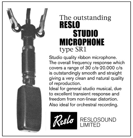 The Reslosound SR1 Studio microphone, which was a big brother to the RB models, and was Reslosound's top of the range ribbon microphone. They are nice sounding figure-8 ribbon microphones, and are very much less common than the RBs. They have become quite desirable amongst collectors and studio engineers.