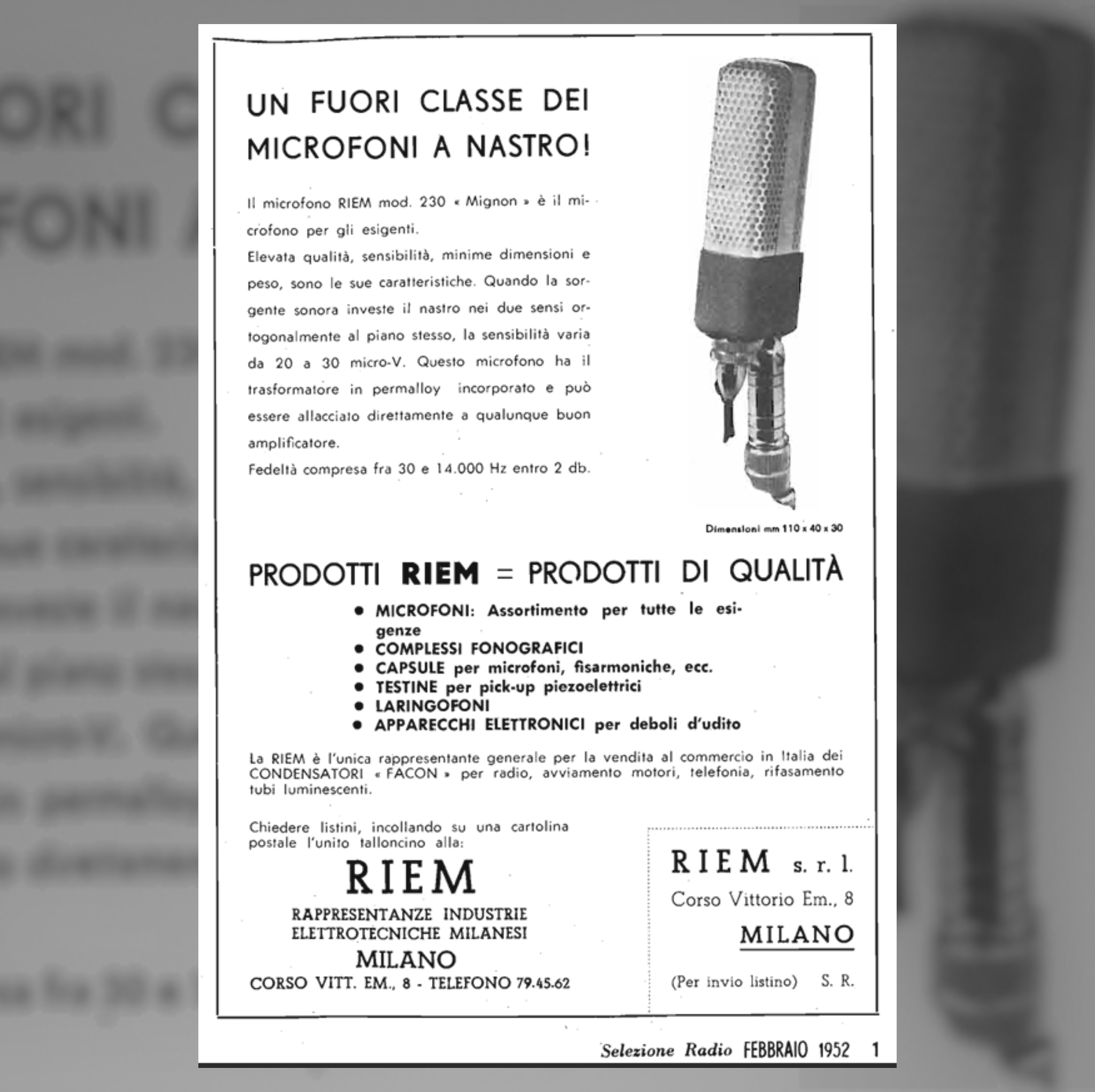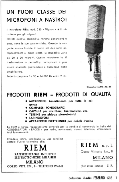 From a RIEM ad in Selezione Radio, dated Feb. 1952