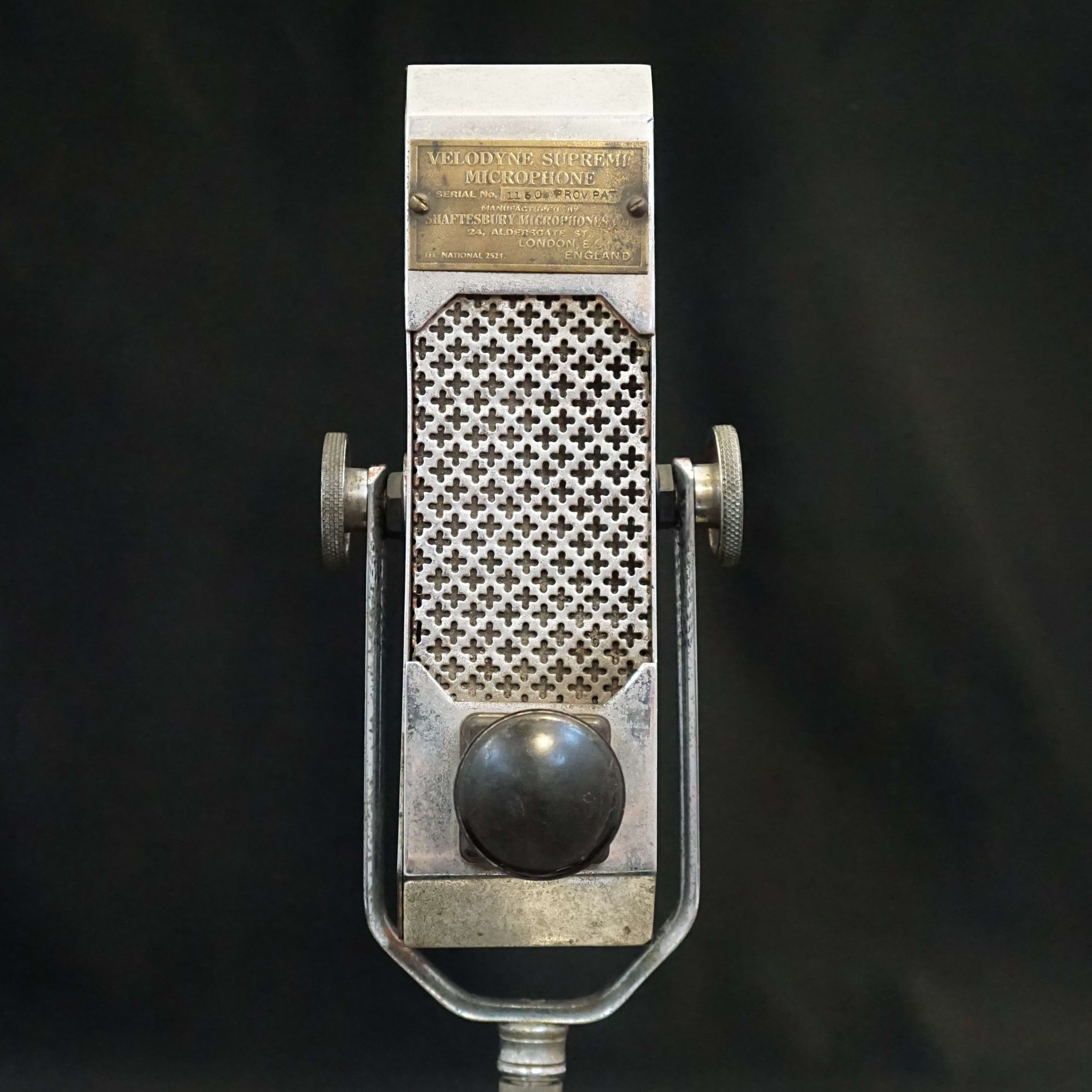 The new Velodyne Supreme Microphone finished in chromium plate costs £12 12s. including a transformer, while the complete equipment, comprising the microphone mounted in a floor stand, a 50-watt universal amplifier, twin loud speakers, and all necessary cables, is available at £50."
