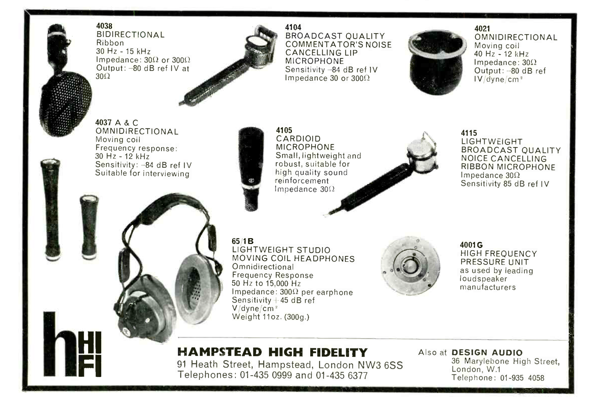 4021-J. Spherical omni-directional moving coil. Flat response 30- 15,000 c/s. Impedance 30 ohms. Sensitivity -80 dB. Price : £16 10s.