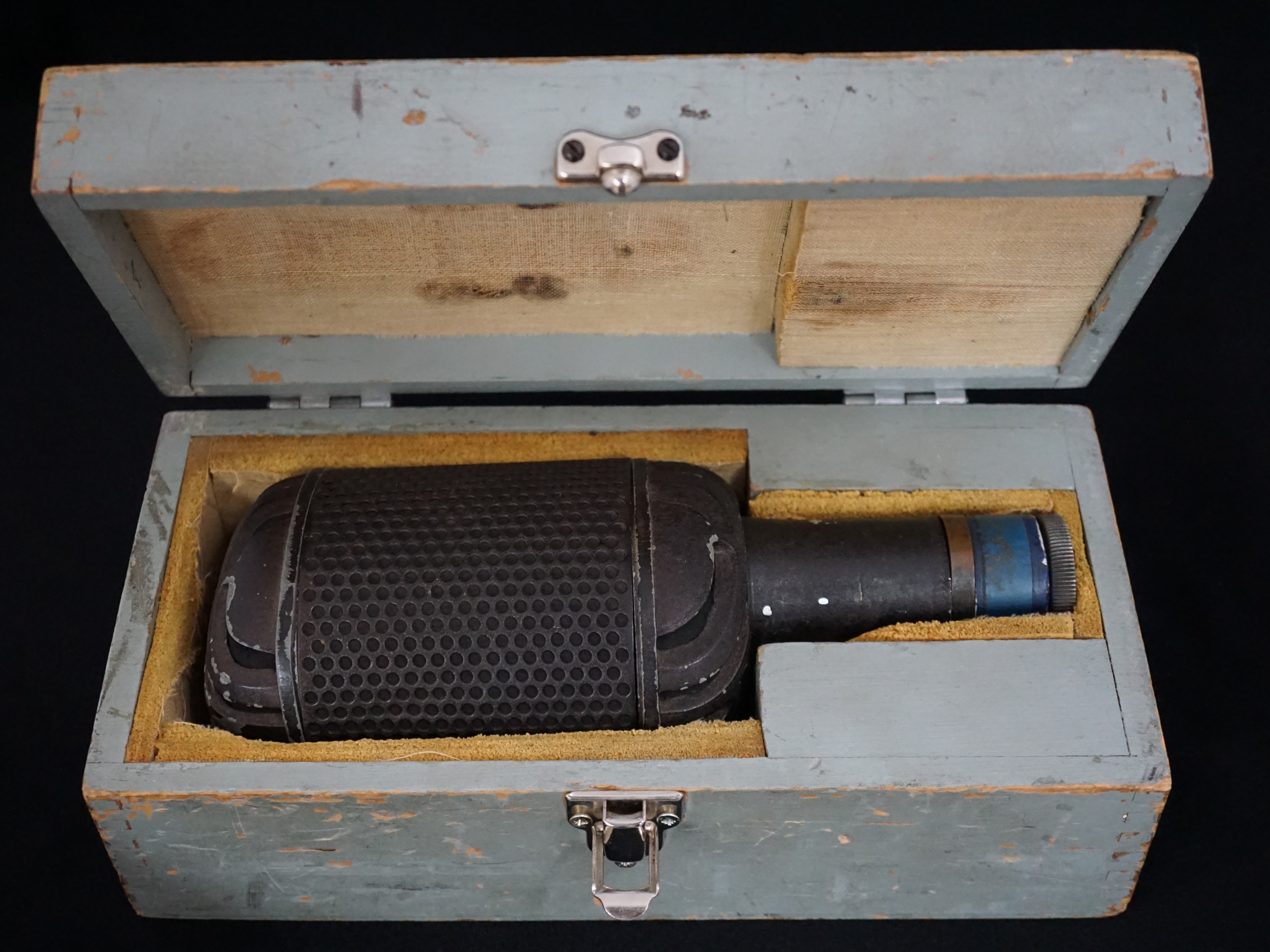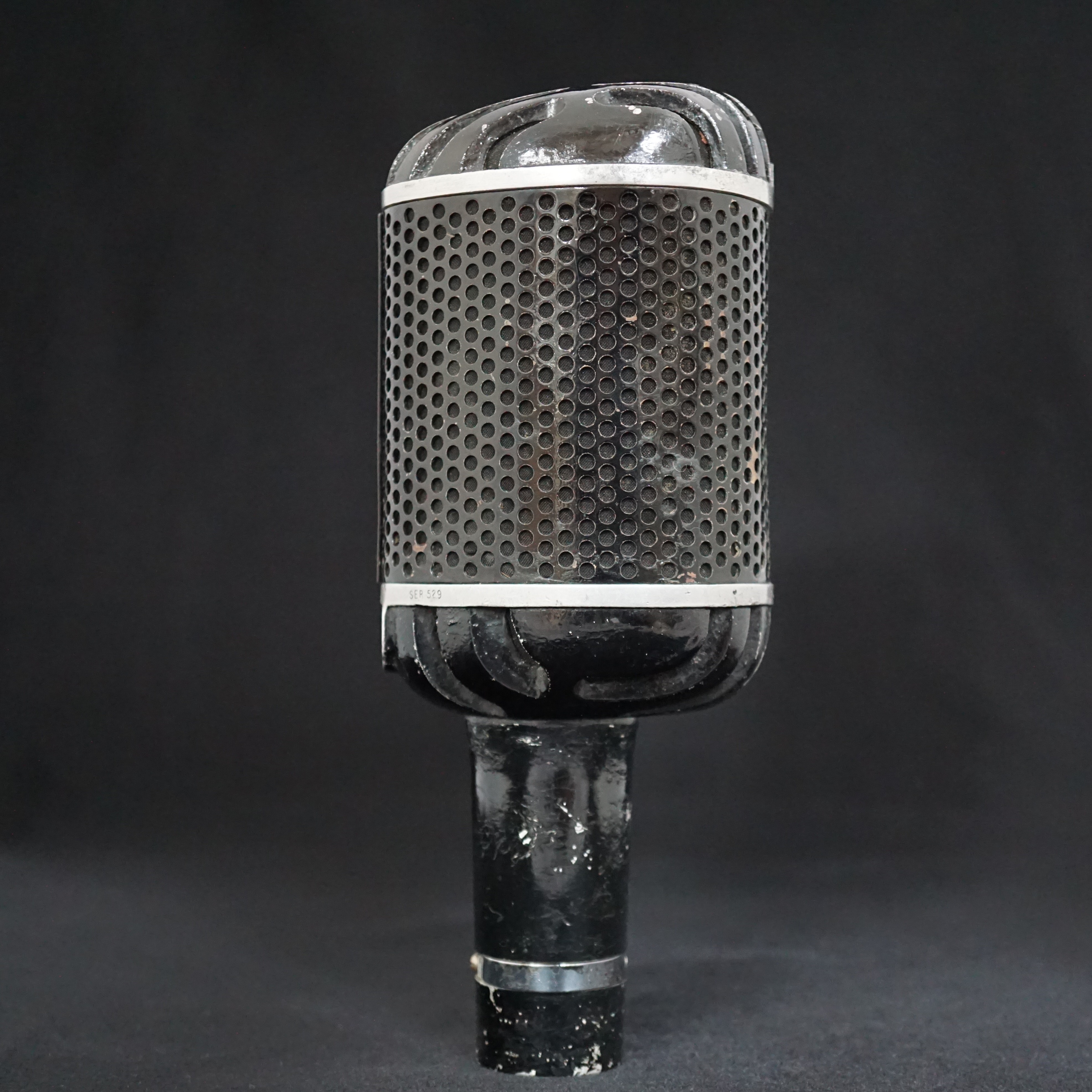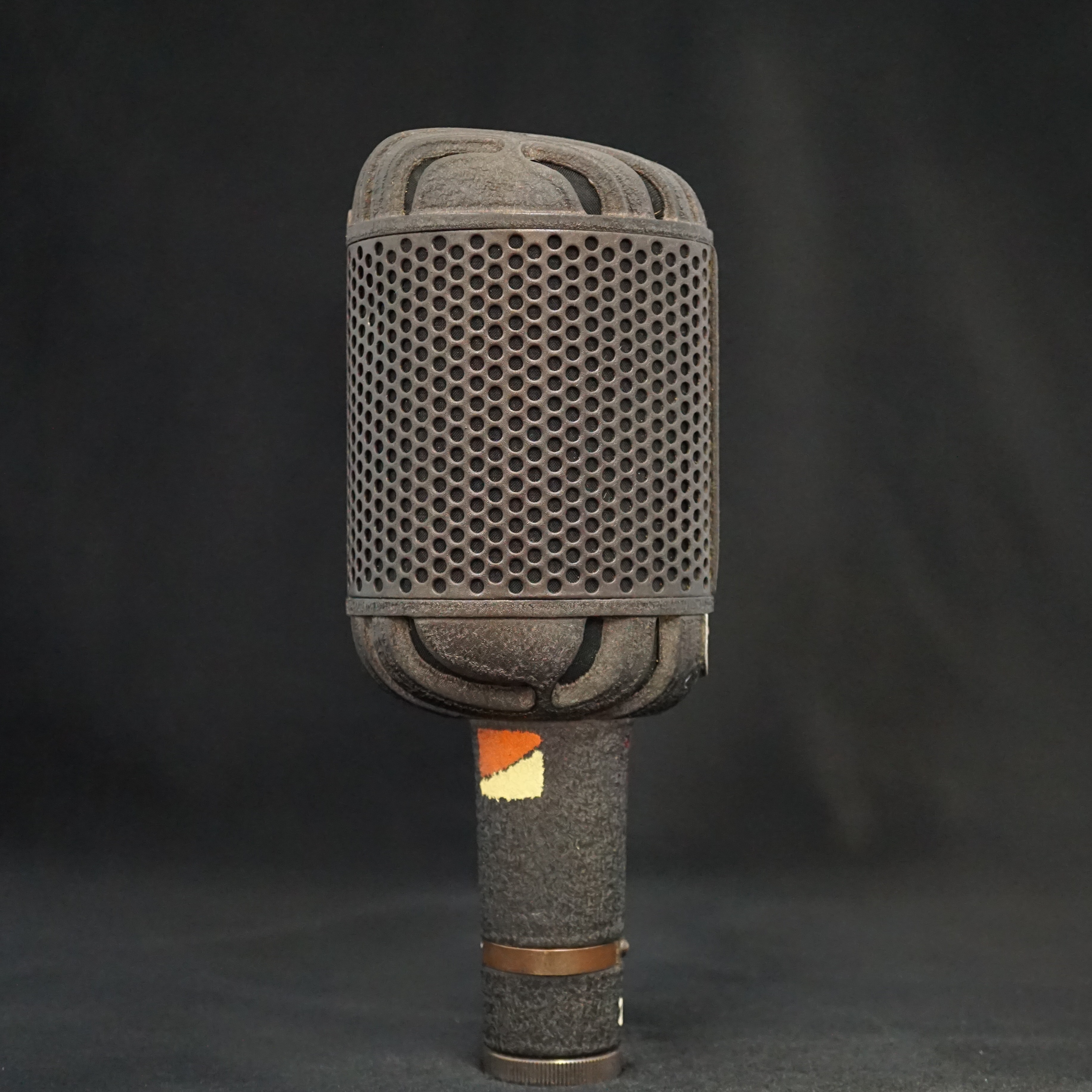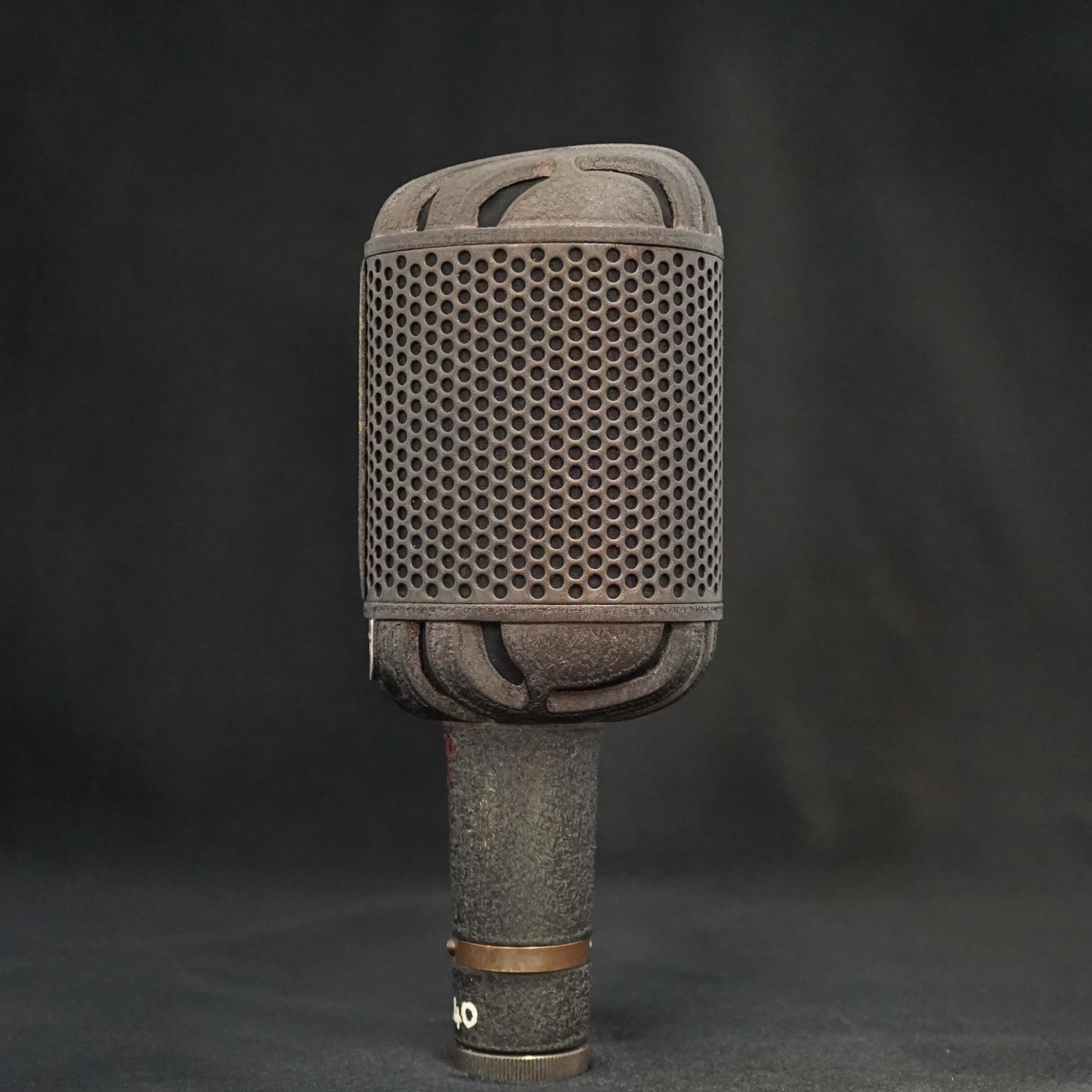 Cosmetically, we see three different finishes - early microphones are painted in gloss black with a polished aluminium band above and below the grill. Later microphones are finished in a textured paint in either black or bronze, without polished areas. The glossy mic would be fine for radio but the matt finish would be better for TV and film sets as they would be non-reflective.