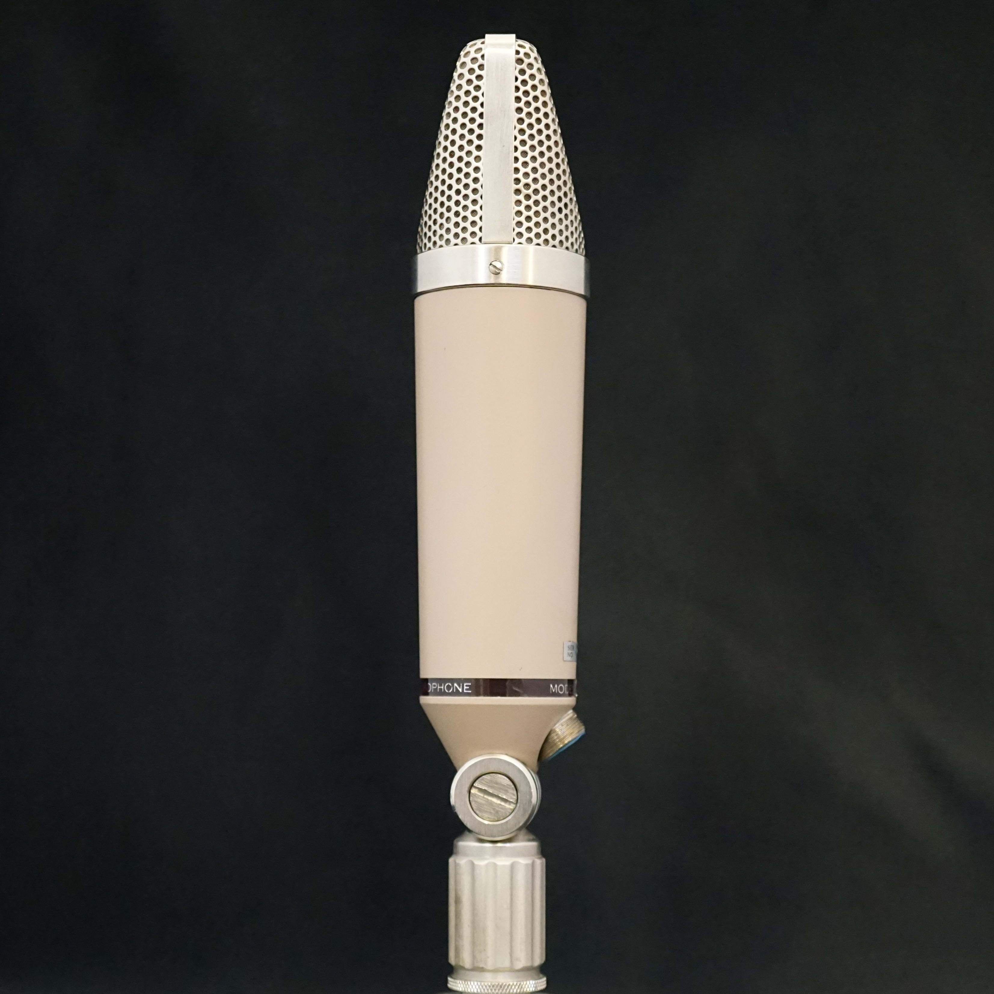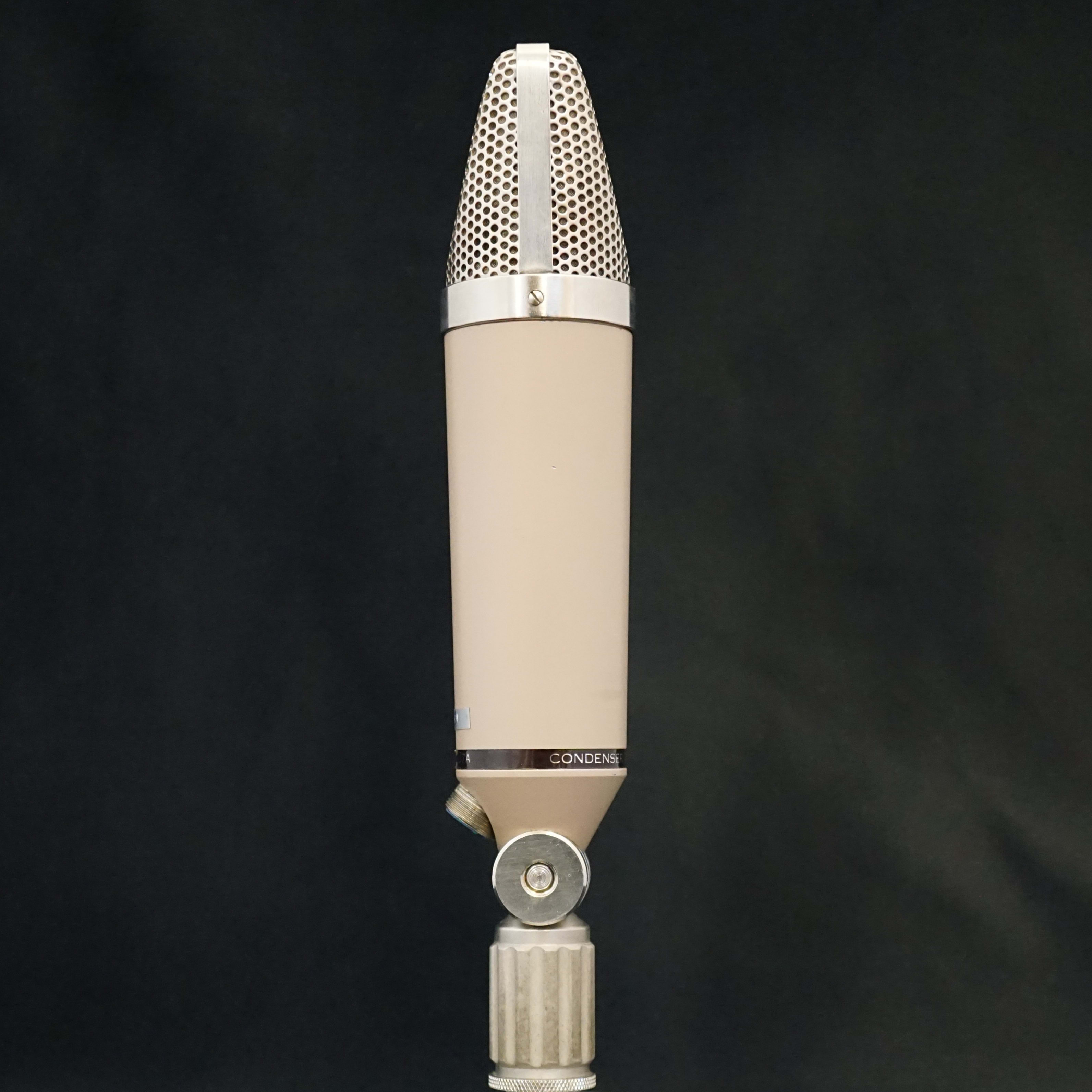 The Syncron Corporation are generally credited with launching the first transistorised capacitor microphone back in 1965 - the AU-7a, which was priced at $169.50 USD. In their own marketing, the manufacturer claimed to have built "the first microphone to successfully employ the Field Effect Transistor." At the time, competitors such as Neumann were selling microphones with tube circuits such as the KM64 and U67 which required separate power supplies. The Syncron mics ran on batteries which saved lugging around an extra box and cable. I know we all love and revere the old Neumann tube microphones, but few would argue that they take longer to set up and warm up than a solid state mic.