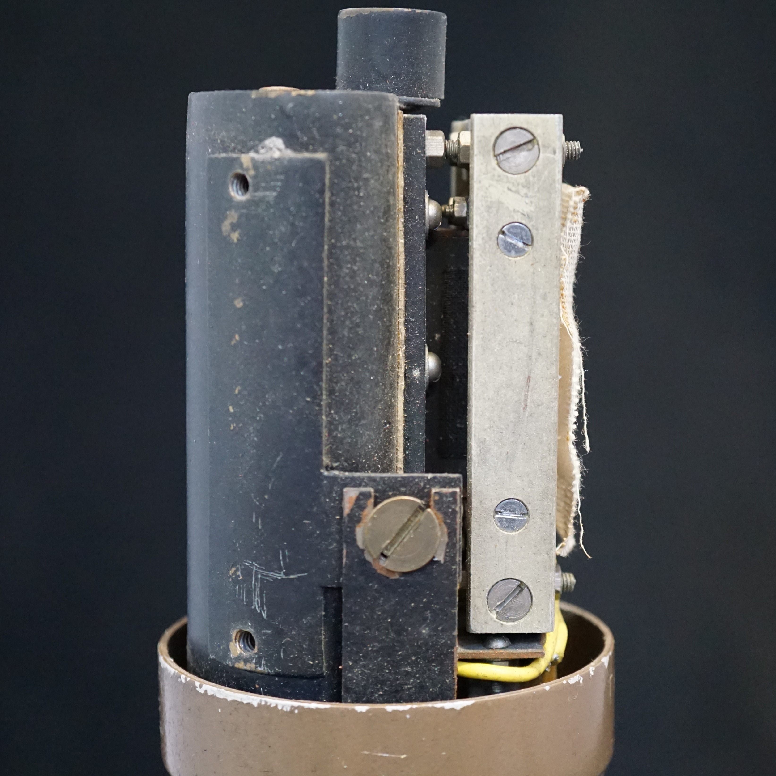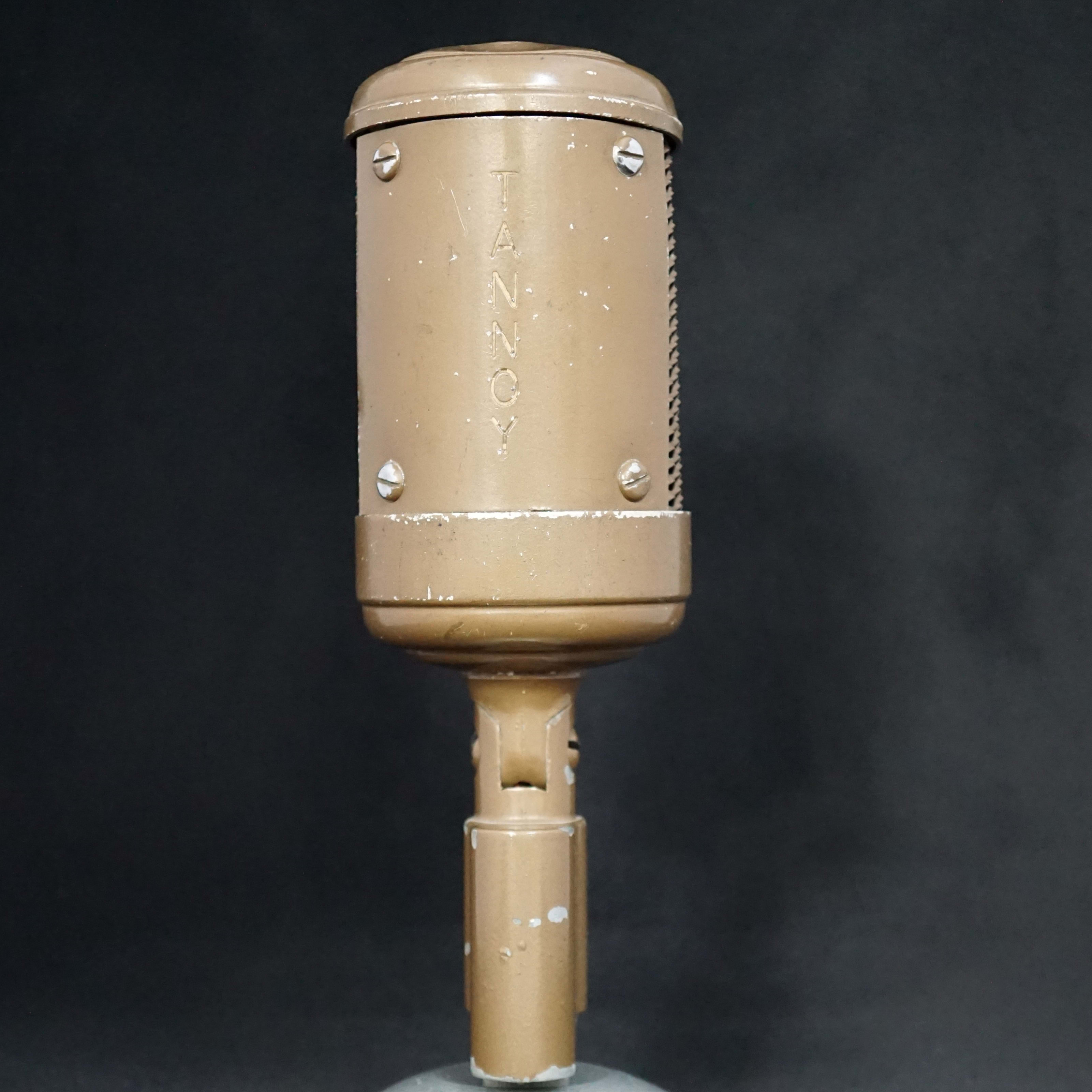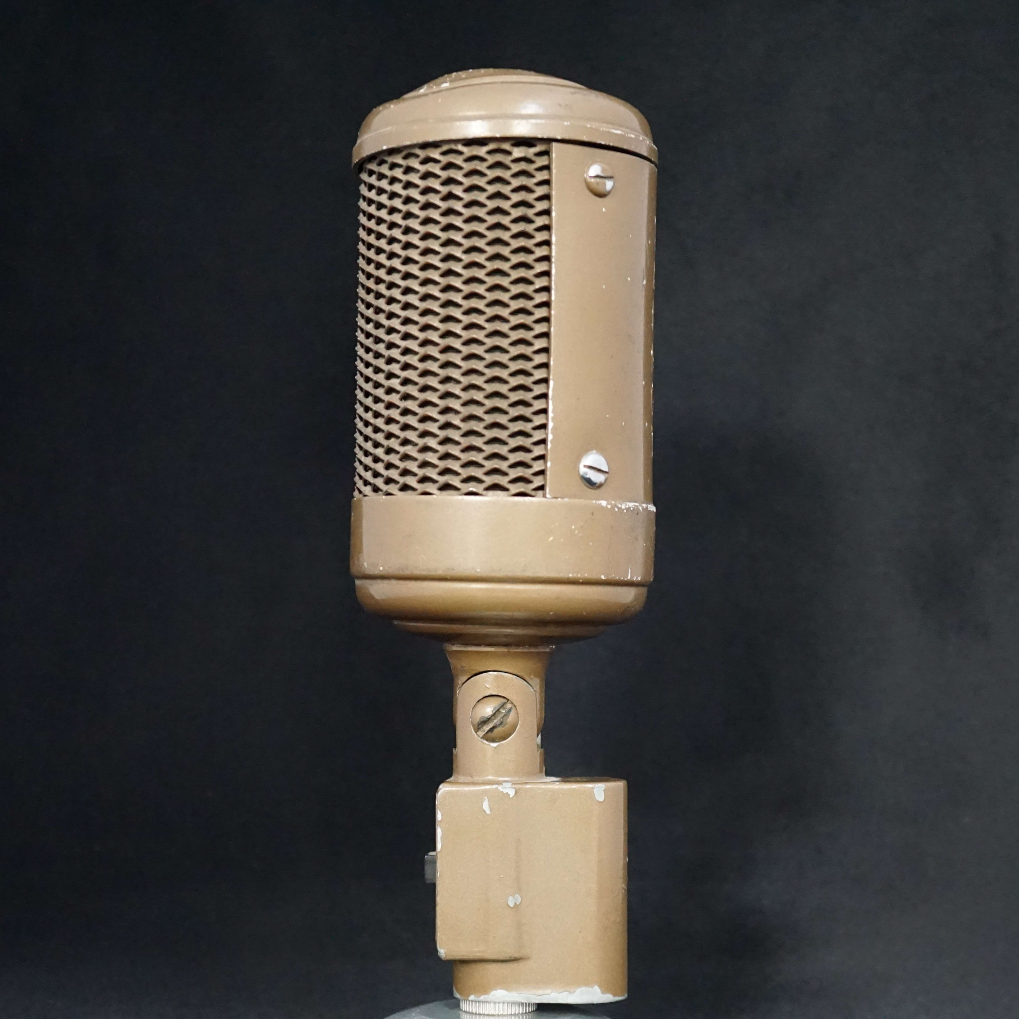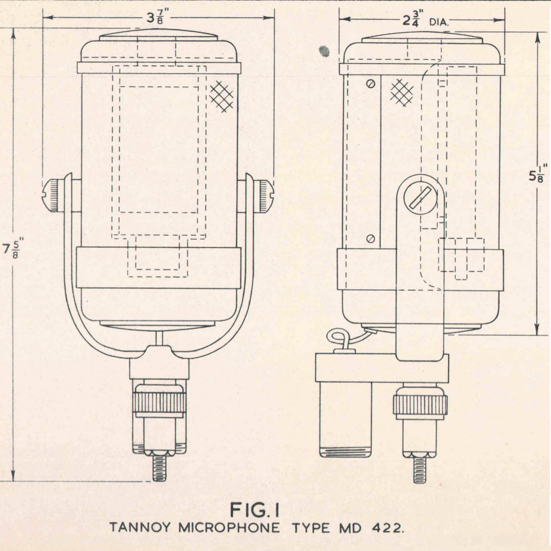 The front is covered with expanded metal over a wire gauze screen, and the back is acoustically opaque. Rubber grommets separate the body of the microphone from its supporting stirrup, thus providing a measure of protection from vibration transmitted through the stand. The length of wire connecting the microphone to the plug is sufficient to allow an adjustment of the tilt of about ±90 degrees from the centre position.