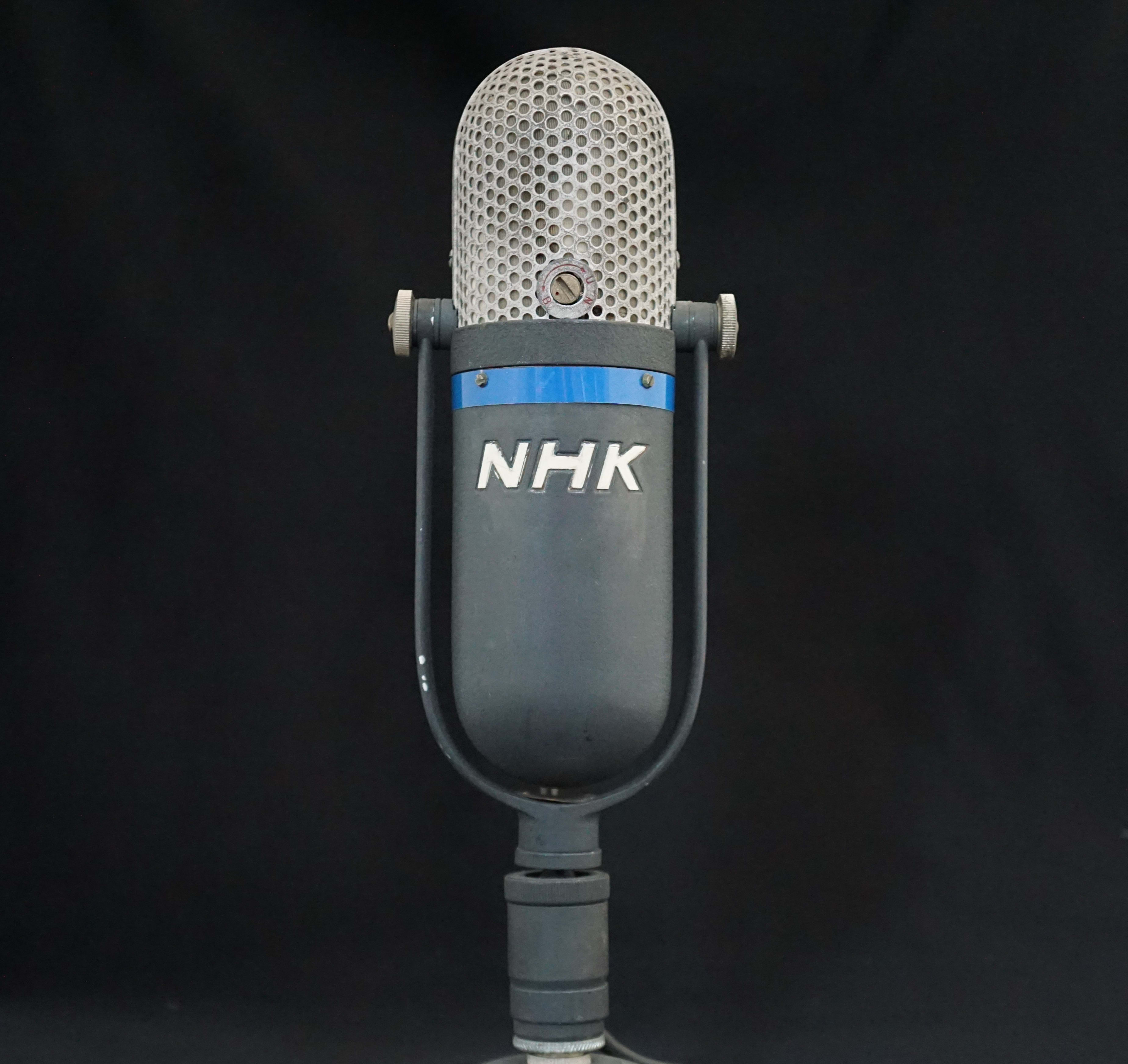 This is an example of the early version of the Toshiba model G ribbon microphone, and is marked G-3 on the badge at the base of the microphone. This version has a mechanical baffle in front of the ribbon which changes the acoustic damping and thus acts as an adjustable high pass filter. The baffle can me moved via a small dial at the front of the grill, and its action may be seen in the animated picture above.